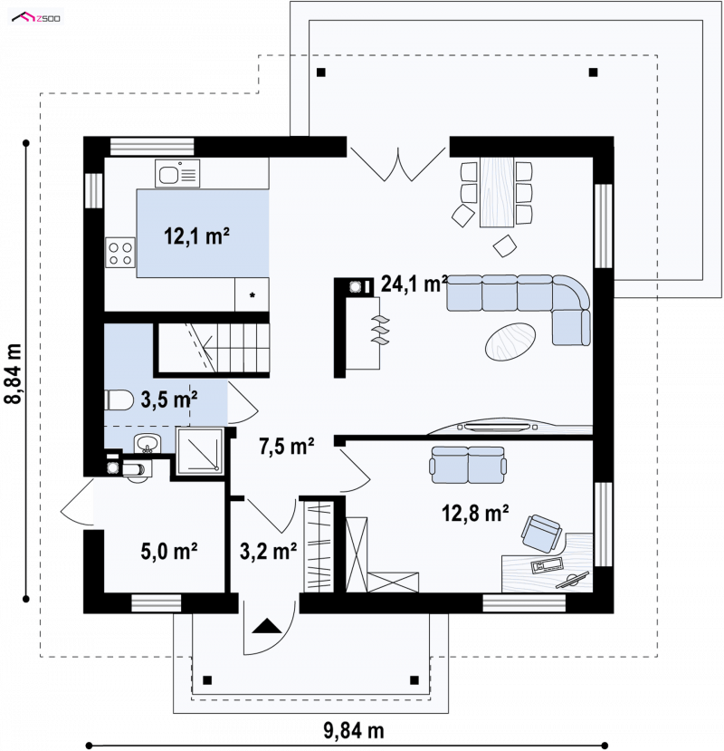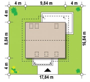 - Min. wymiary działki 16.84x17.84 m