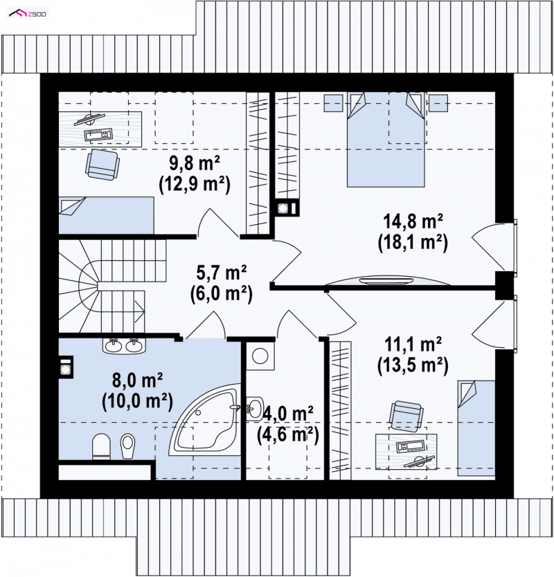 - Powierzchnia dachu 160.80 m²