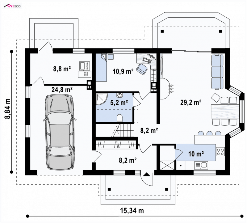 - Wysokość budynku 8.34 m