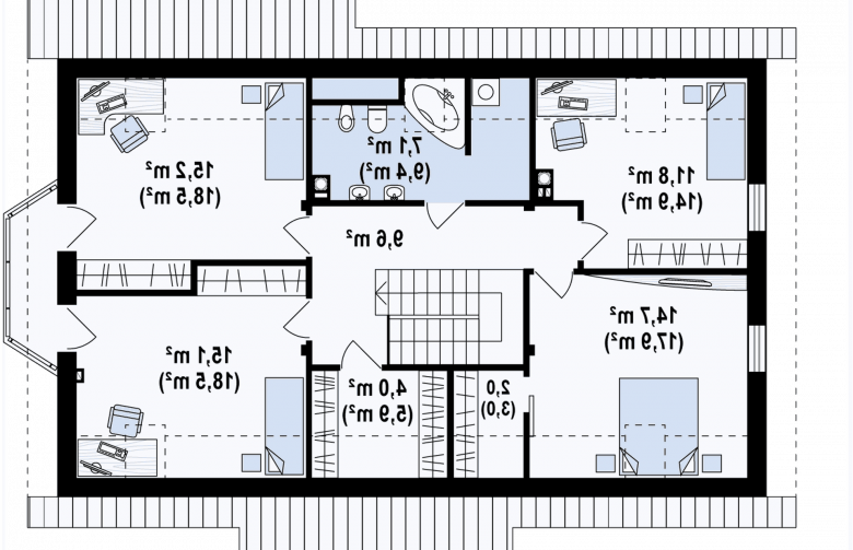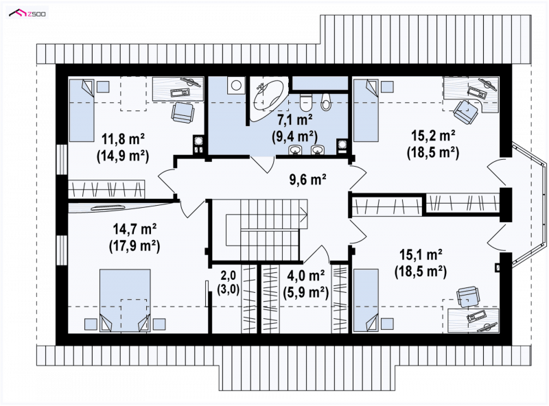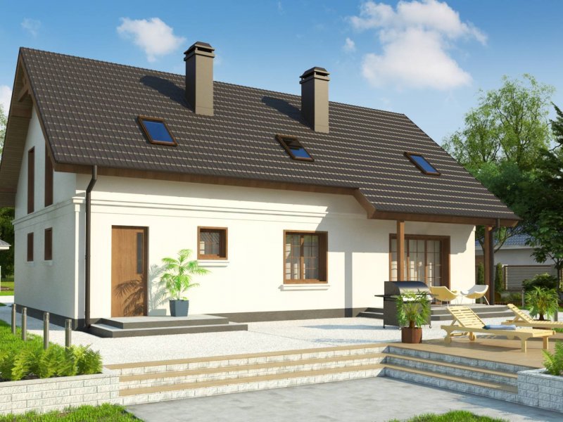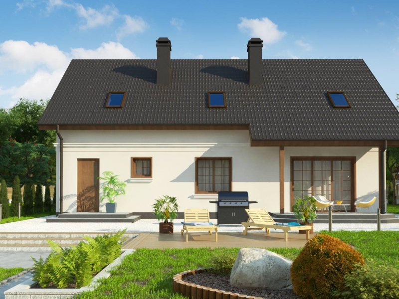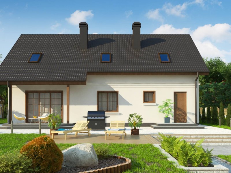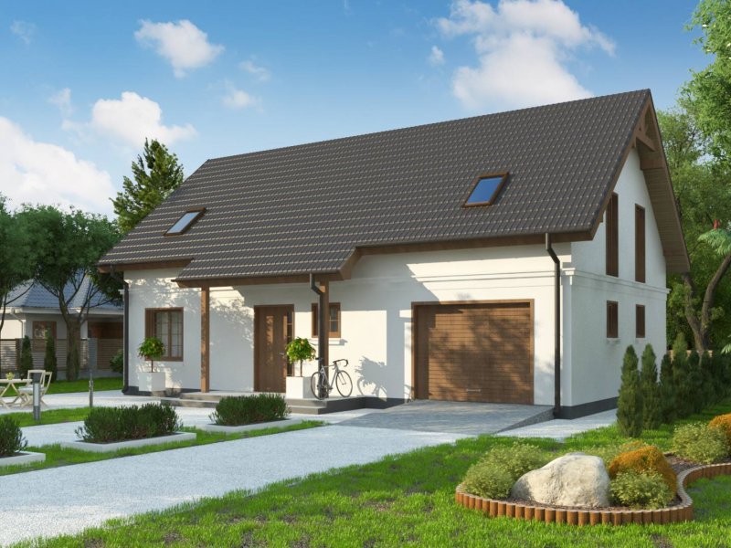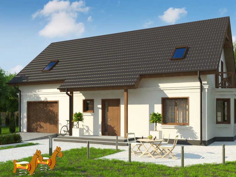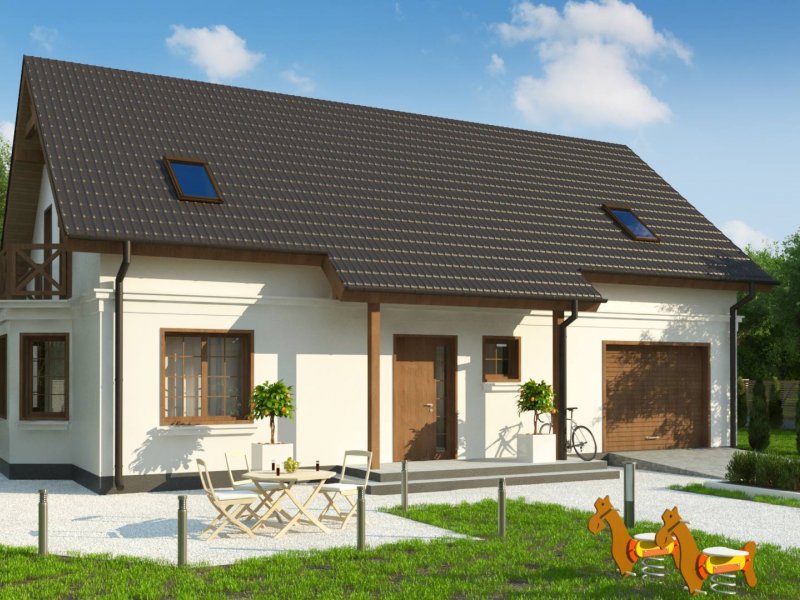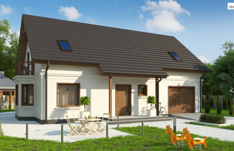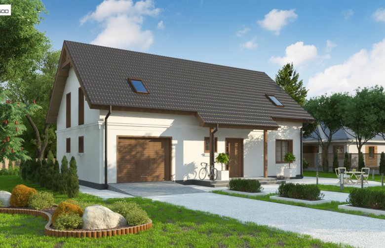 Z178 + 150 to zgrabny i funkcjonalny piętrowy dom z bocznym jednostanowiskowym garażem. Zwarta, prosta bryła oraz dwuspadowy dach czynią go rozsądną, tanią w realizacji inwestycją. Eleganckie wykończenie elewacji, klasyczne dodatki oraz stolarka okienna z naturalnego drewna nadają mu wyjątkowego stylu.