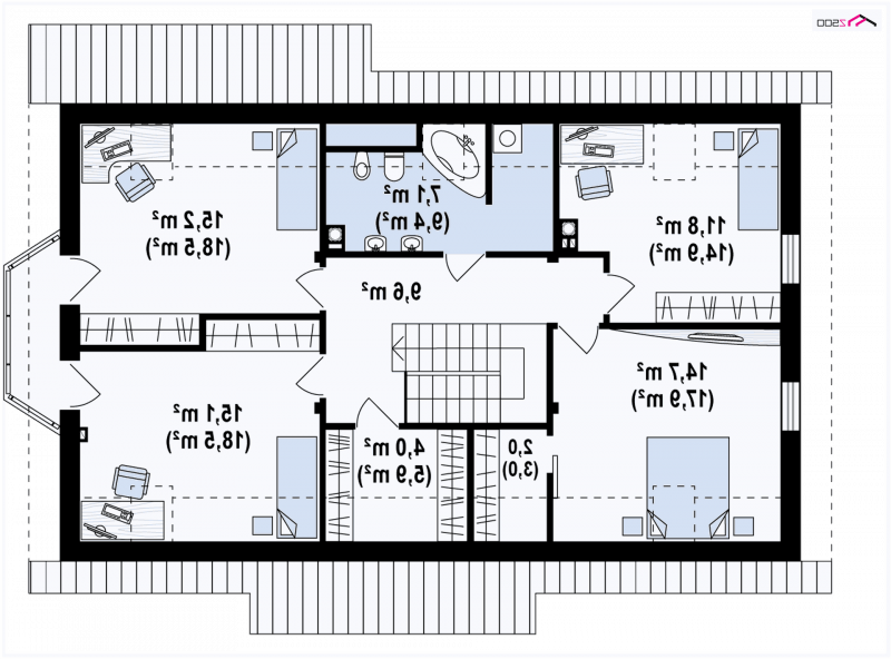 - Kąt nachylenia dachu 40.00°