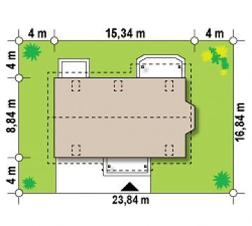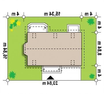 - Min. wymiary działki 16.84x23.34 m