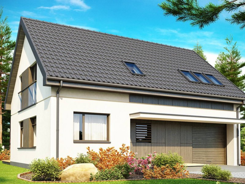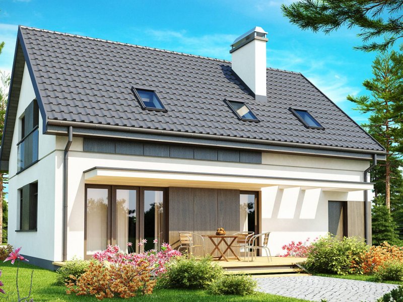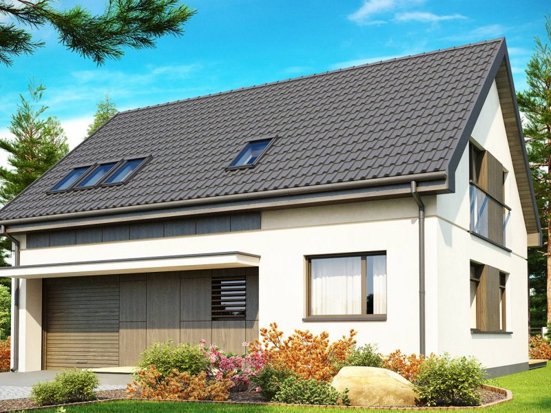 Projekt Z183 to elegancka propozycja domu o prostej bryle z dachem dwuspadowym. Okładzina z paneli włókno cementowych nadaje mu niepowtarzalnego uroku.