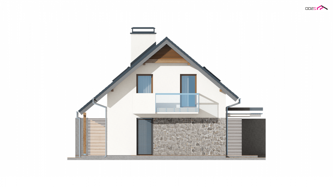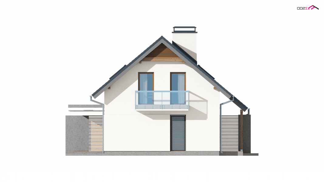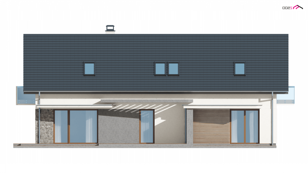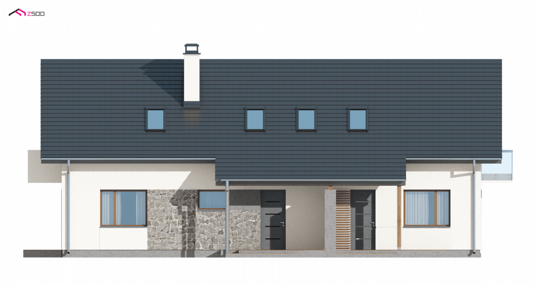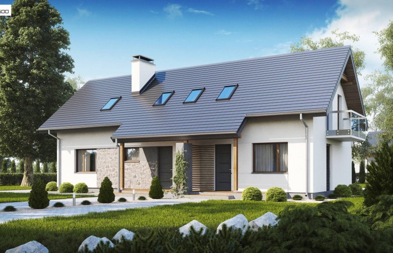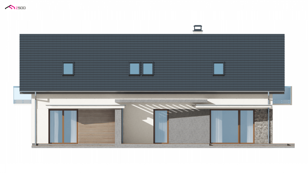 Z184 to dwie części: główna z dużą strefą dzienną, dodatkowym pokojem na parterze, trzema sypialniami na piętrze, oraz mniejsza, idealna także pod wynajem. W obu częściach strefy dziennej znajduje się wygodna funkcjonalna kuchnia, miejsce na stół, salon z kominkiem. W mniejszej zaprojektowano pieco-kominek na ekologiczne, tanie pellety. Nie jest to dodatek konieczny, duże pomieszczenie gospodarcze obsługuje cały budynek, ogrzewa wszystkie pomieszczenia. Na poddaszu mieszczą się trzy pokoje, największa sypialnia posiada własną garderobę. W mniejszej części wydzielono dwa pokoje z balkonem i łazienkę. Konstrukcja umożliwia aranżację tej przestrzeni dowolnie, ścianki można przesuwać lub całkiem usunąć, zostawiając open space np: pod aranżację studia.