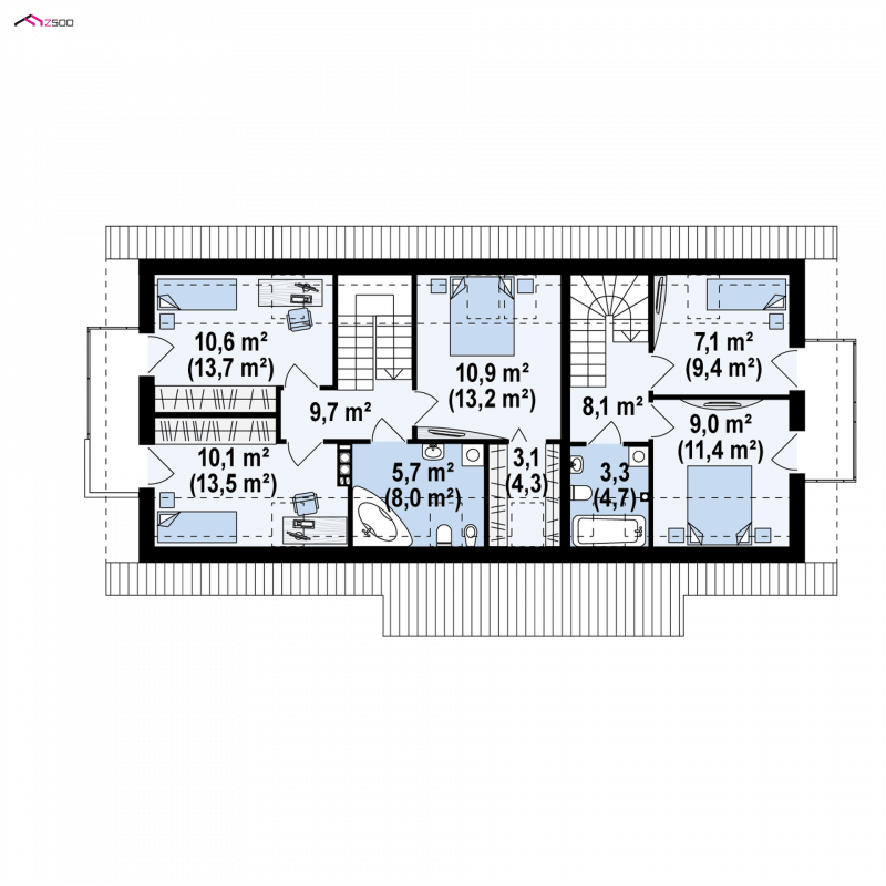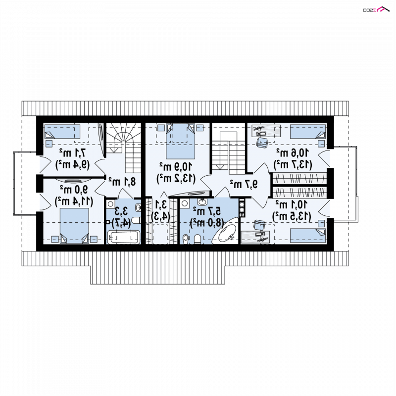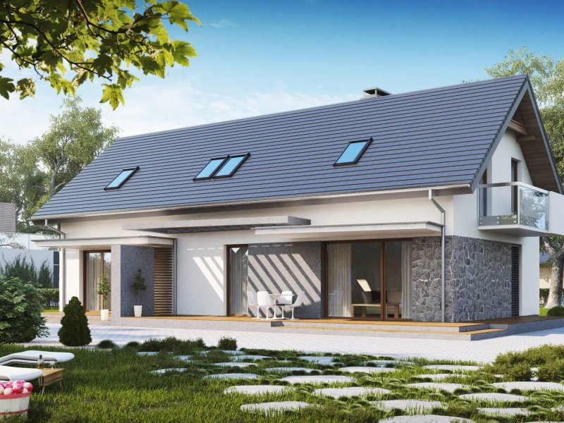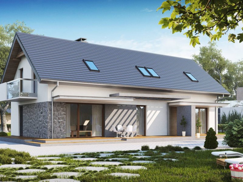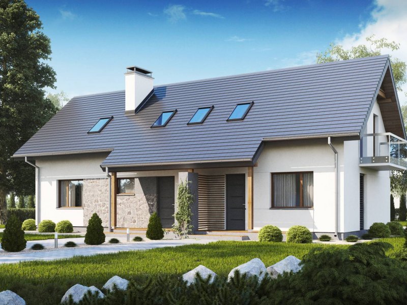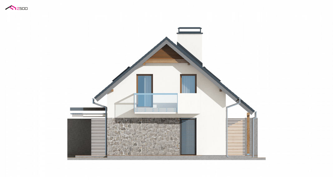 Z184 to dwie części: główna z dużą strefą dzienną, dodatkowym pokojem na parterze, trzema sypialniami na piętrze, oraz mniejsza, idealna także pod wynajem. W obu częściach strefy dziennej znajduje się wygodna funkcjonalna kuchnia, miejsce na stół, salon z kominkiem. W mniejszej zaprojektowano pieco-kominek na ekologiczne, tanie pellety. Nie jest to dodatek konieczny, duże pomieszczenie gospodarcze obsługuje cały budynek, ogrzewa wszystkie pomieszczenia. Na poddaszu mieszczą się trzy pokoje, największa sypialnia posiada własną garderobę. W mniejszej części wydzielono dwa pokoje z balkonem i łazienkę. Konstrukcja umożliwia aranżację tej przestrzeni dowolnie, ścianki można przesuwać lub całkiem usunąć, zostawiając open space np: pod aranżację studia.