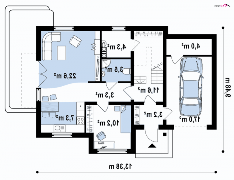 Z192 to dwulokalowy dom piętrowy o współczesnej architekturze i komfortowym układem funkcjonalnym.
