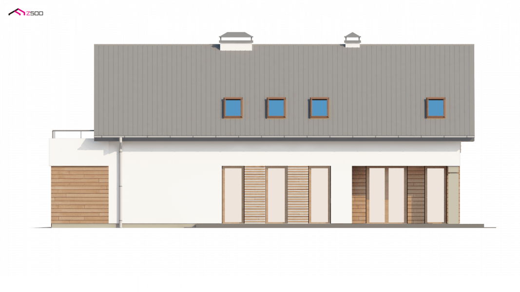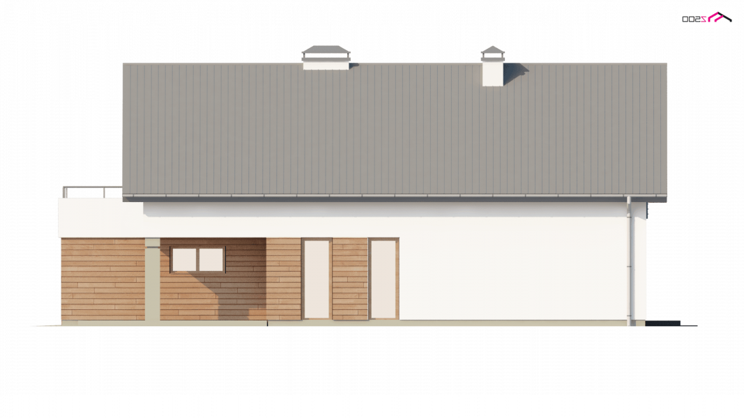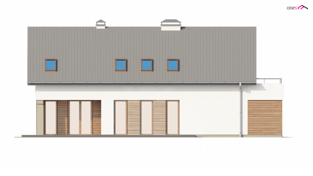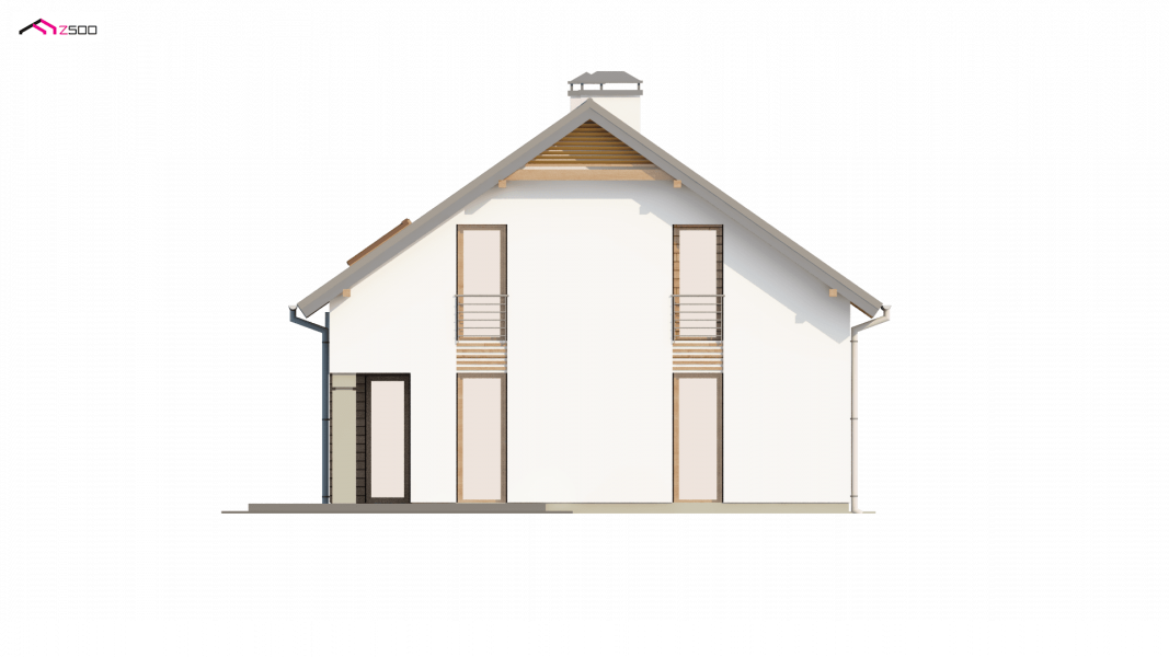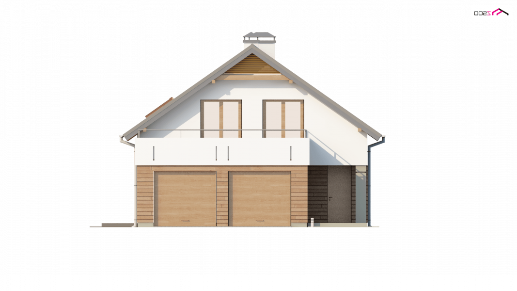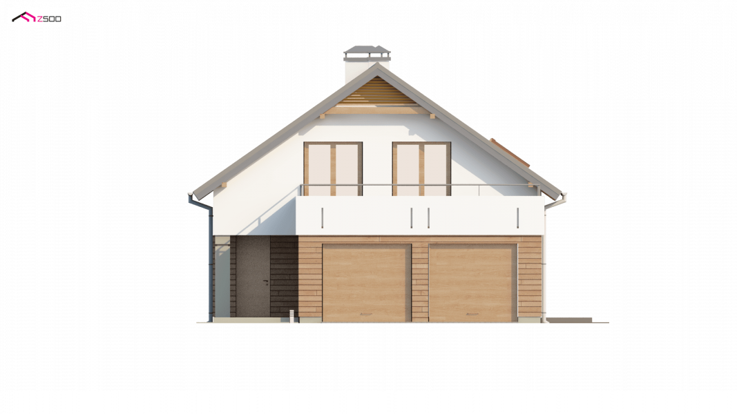 Z198 to piętrowy dom z dwustanowiskowym garażem i dachem dwuspadowym. Prostą formę urozmaica podcień w salonie oraz wysunięta bryła garażu. Subtelne wykończenia elewacji elementami z drewna nadają wysmakowanej elegancji.