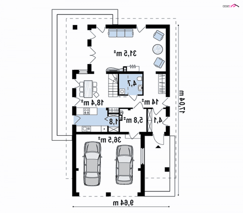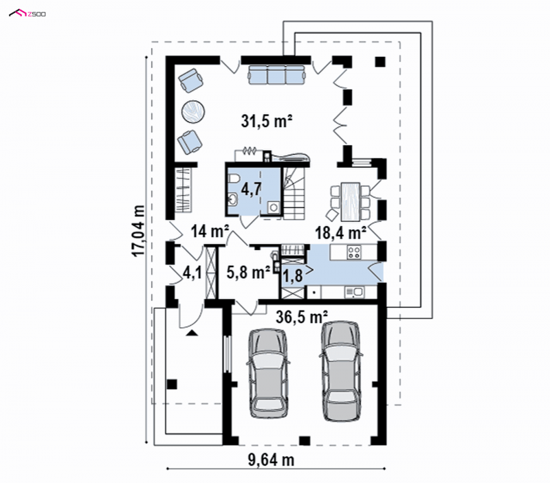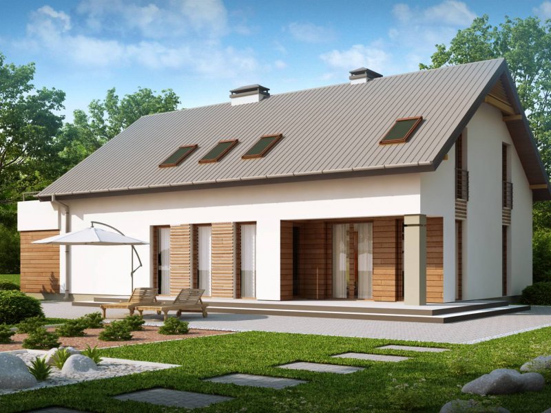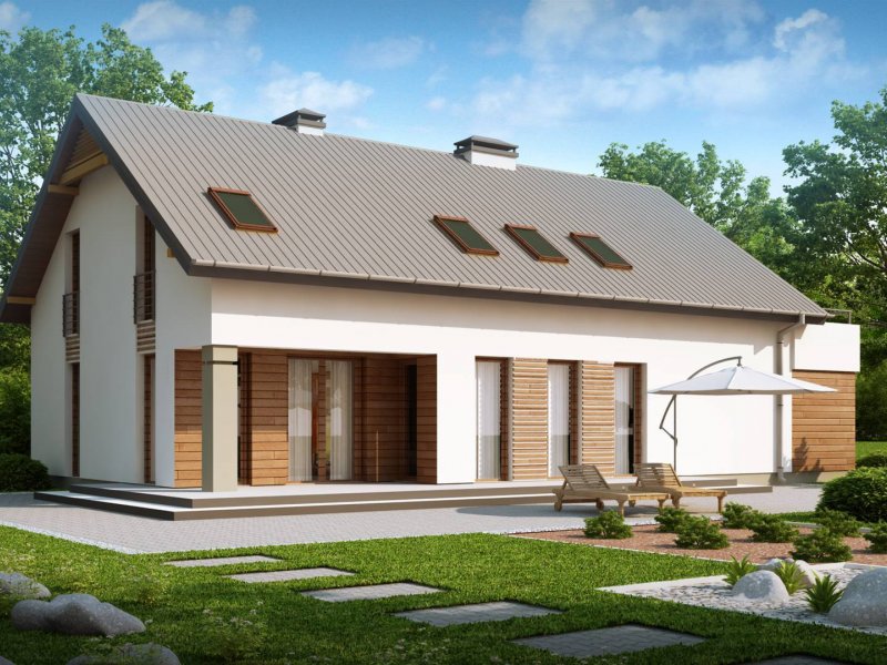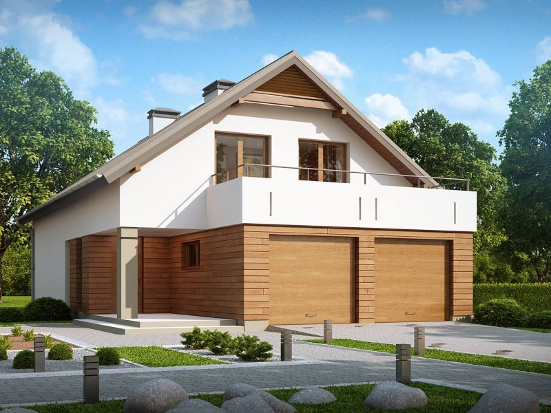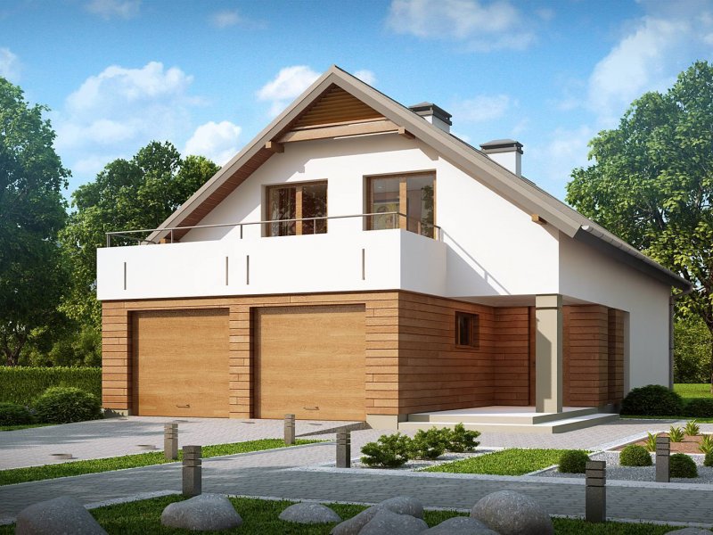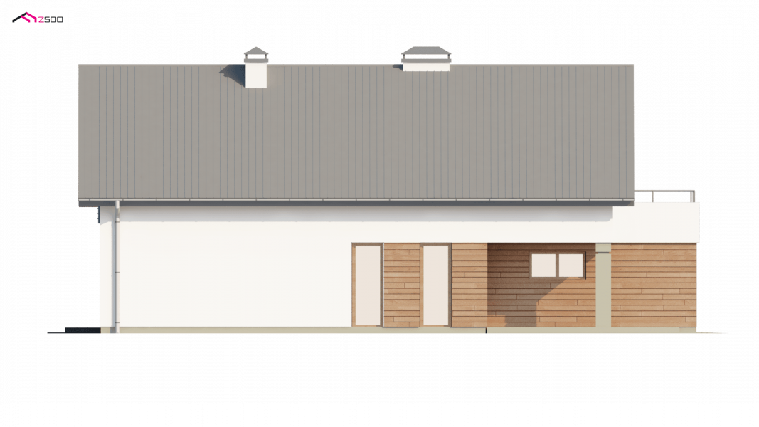 Z198 to piętrowy dom z dwustanowiskowym garażem i dachem dwuspadowym. Prostą formę urozmaica podcień w salonie oraz wysunięta bryła garażu. Subtelne wykończenia elewacji elementami z drewna nadają wysmakowanej elegancji.