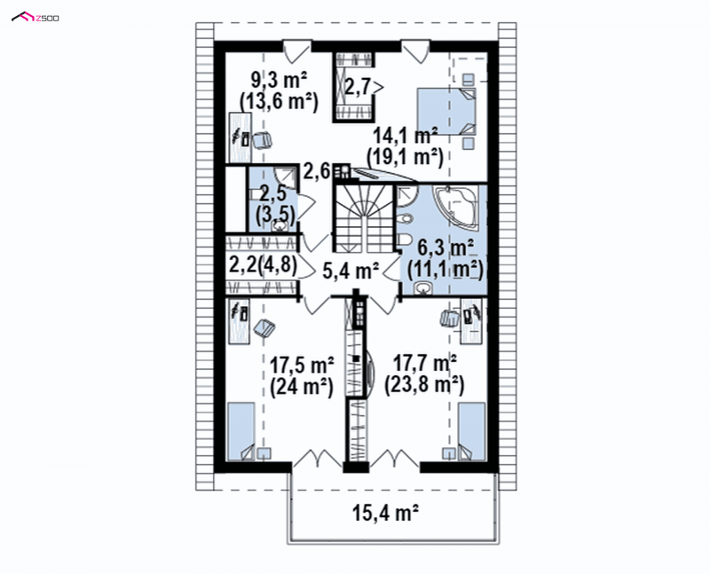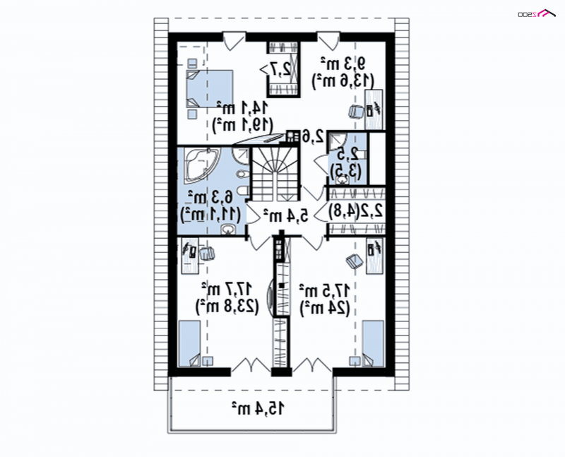 Z198 to niezwykle wygodny i funkcjonalny projekt. Na parterze zaplanowano jasną i przestronna strefę dzienną z dużą kuchnią, podręczną spiżarką oraz jadalnią. W niemal każdym pomieszczeniu znajdują się drzwi balkonowe, które zapewniają doskonały kontakt z otaczającym ogrodem oraz umożliwiają wyjście na taras. Przewidziano tu również liczne miejsca na szafy oraz schowki, dużą łazienkę z miejscem na pralnię. Na poddaszu znajdują się trzy obszerne sypialnie, ogólnodostępna łazienka oraz pojemna garderoba. Strefa gospodarzy to wydzielony azyl z komfortową sypialnią, własna łazienką i garderobą oraz dodatkowym pokojem do pracy. Dwa bliźniacze pokoje posiadają dodatkowo wyjście na wygodny taras nad garażem.