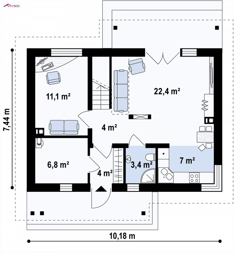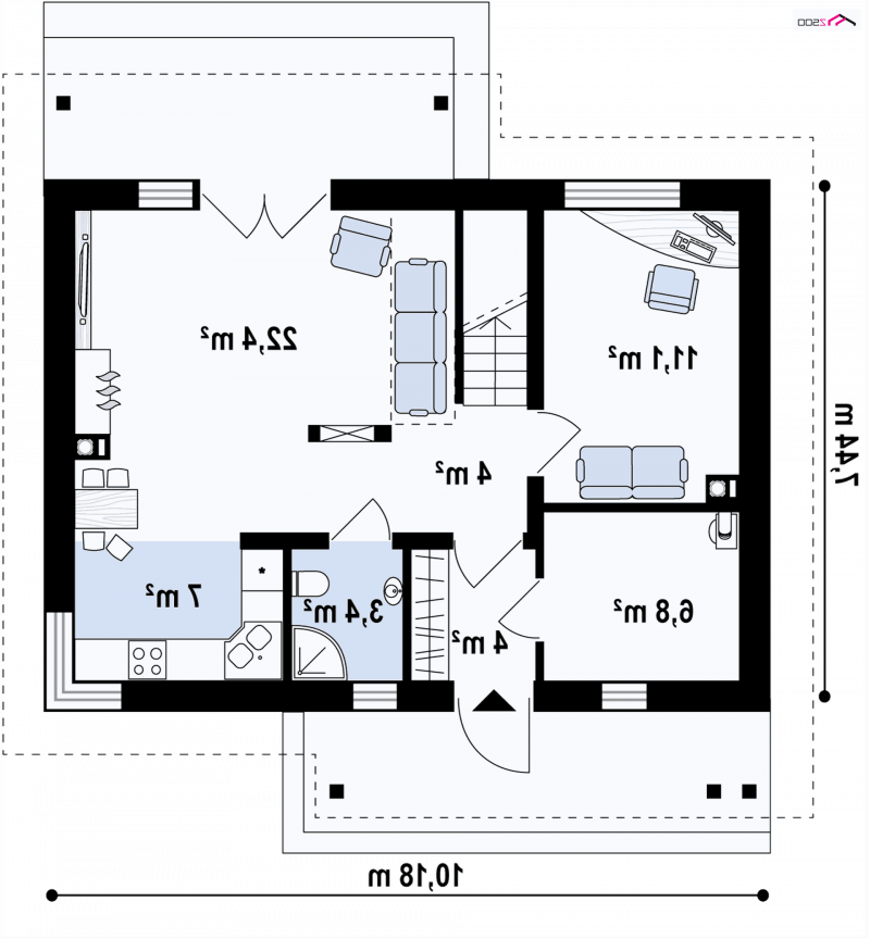 - Min. wymiary działki 15.44x18.18 m