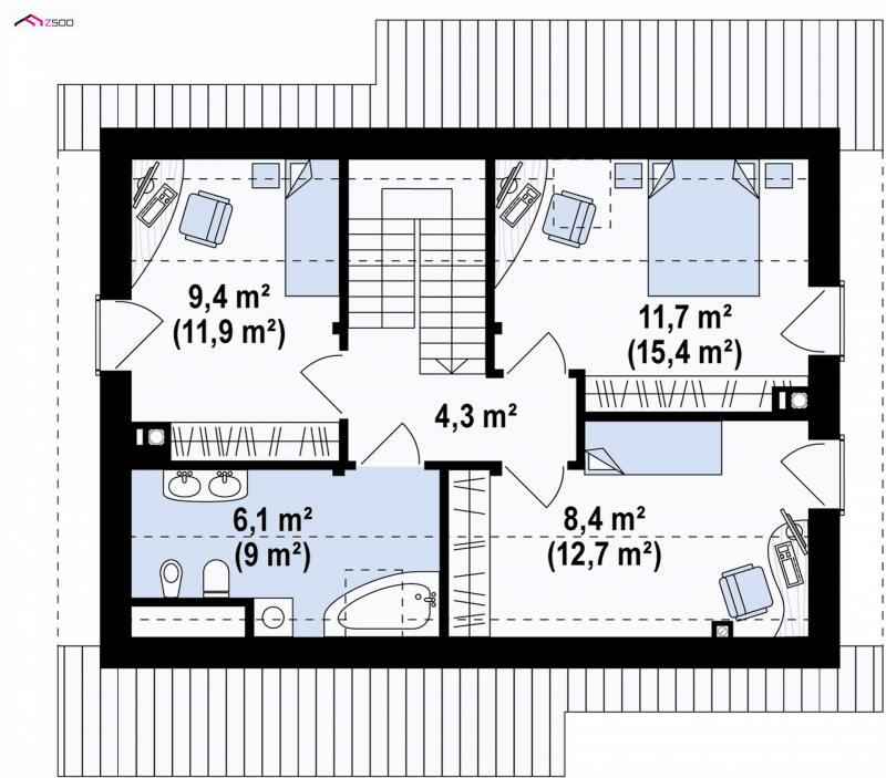 - Powierzchnia dachu 133.57 m²