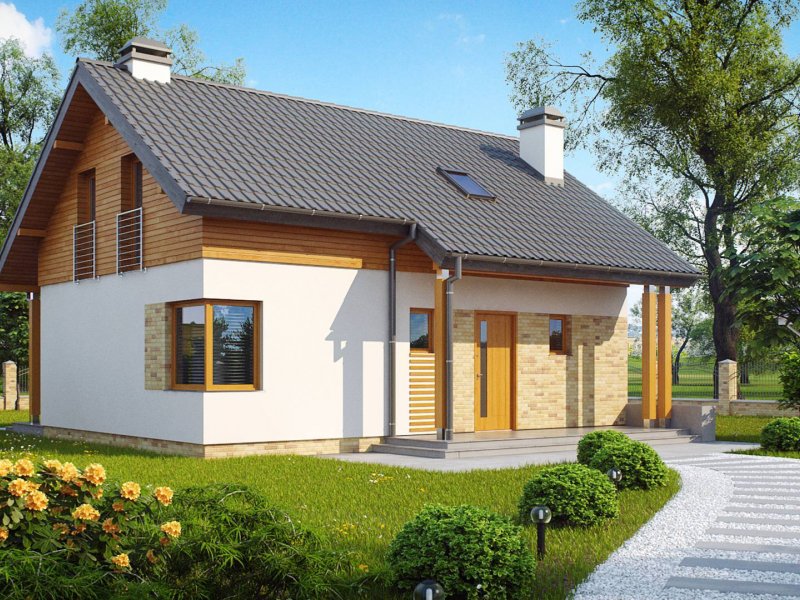 Z210 v1 to przytulny i funkcjonalny dom z poddaszem użytkowym. Prosta, zgrabna bryła, zastosowanie naturalnego drewna na elewacjach oraz ciepła kolorystyka elementów wykończenia nadają mu wyjątkowego uroku.
