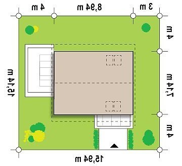 - Min. wymiary działki 15.14x15.94 m