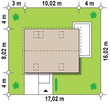 - Min. wymiary działki 16.02x17.02 m