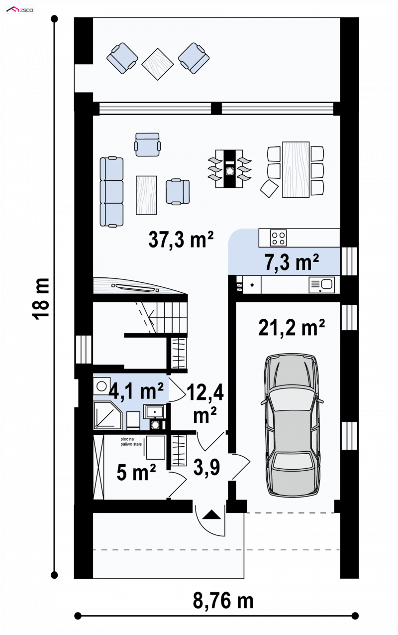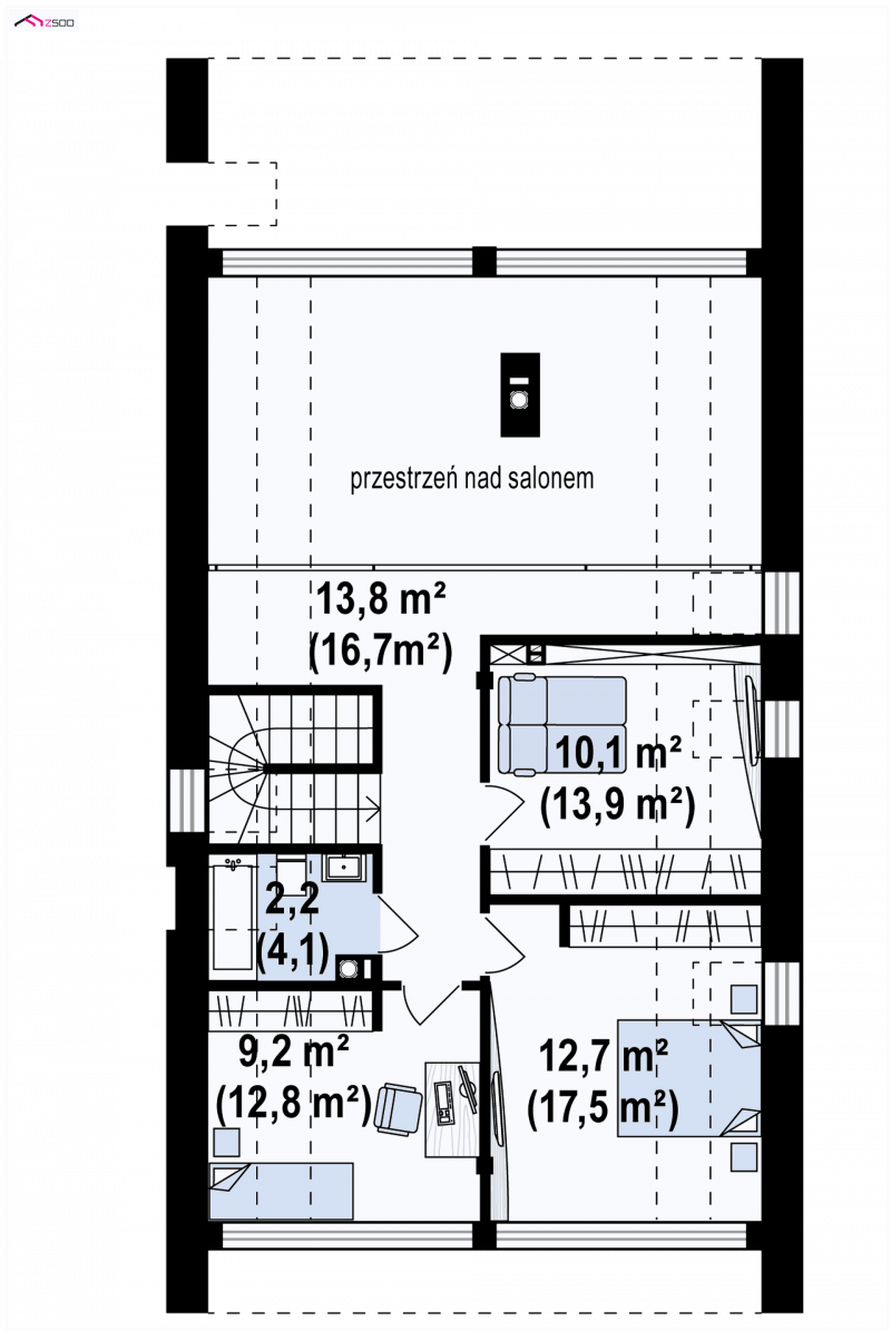 Z215 to dom z poddaszem użytkowym, niepodpiwniczony, przeznaczony dla 3-4-osobowej rodziny. Klasyczną bryłę budynku wzbogacają nowocześnie zaprojektowane detale.