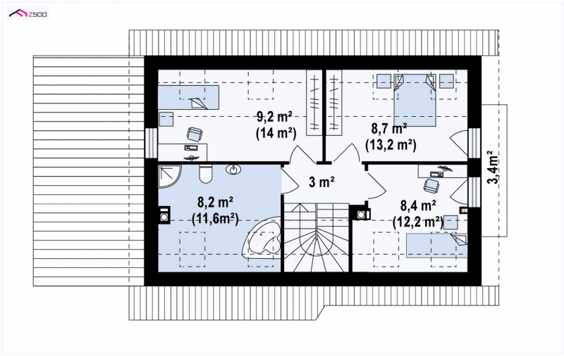 - Powierzchnia dachu 150.06 m²