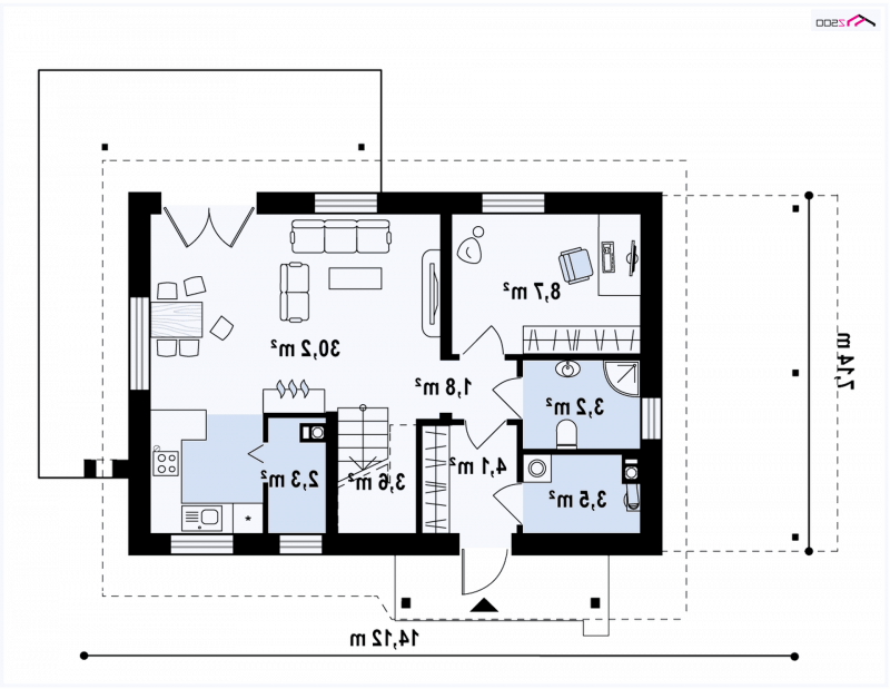 - Min. wymiary działki 15.14x19.54 m