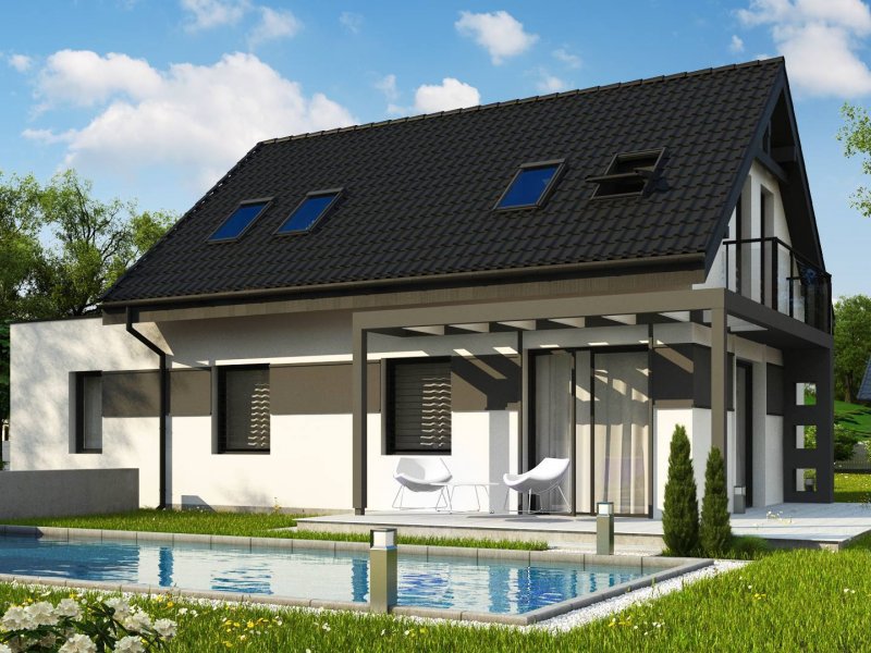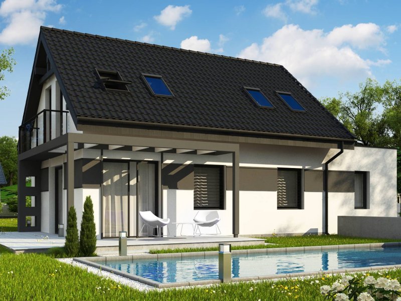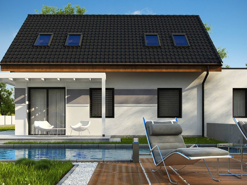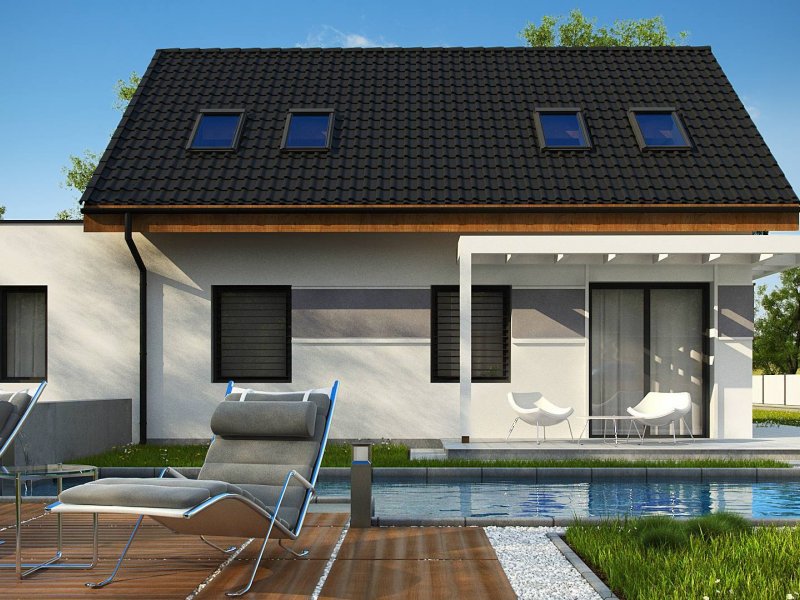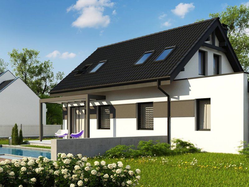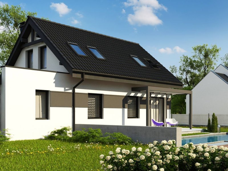 Projekt jest doskonałą propozycją dla osób poszukujących funkcjonalnego i prostego w budowie domu. Całość przykryta dwuspadowym dachem sprawia, że dom jest tanią i ekonomiczną inwestycją.