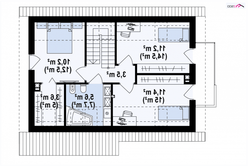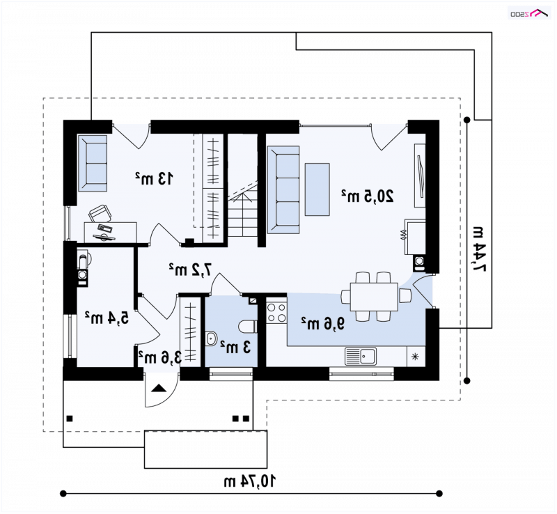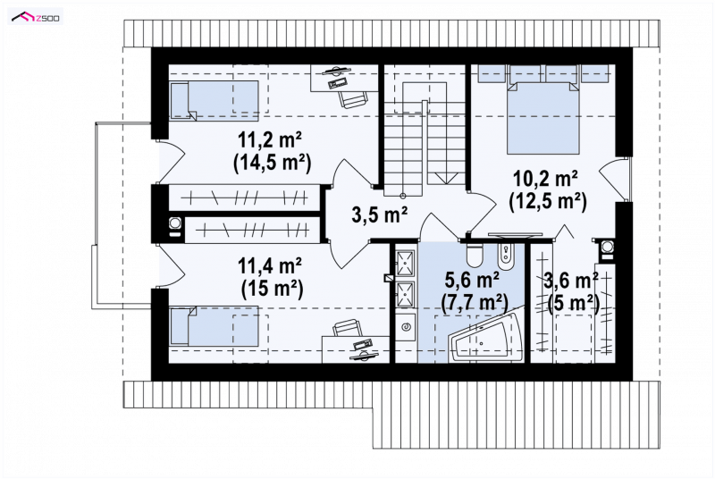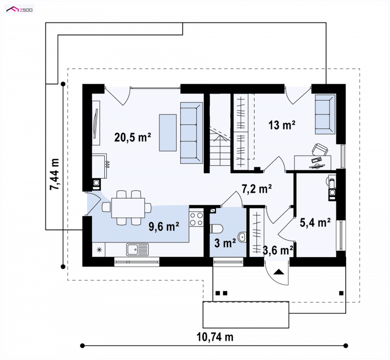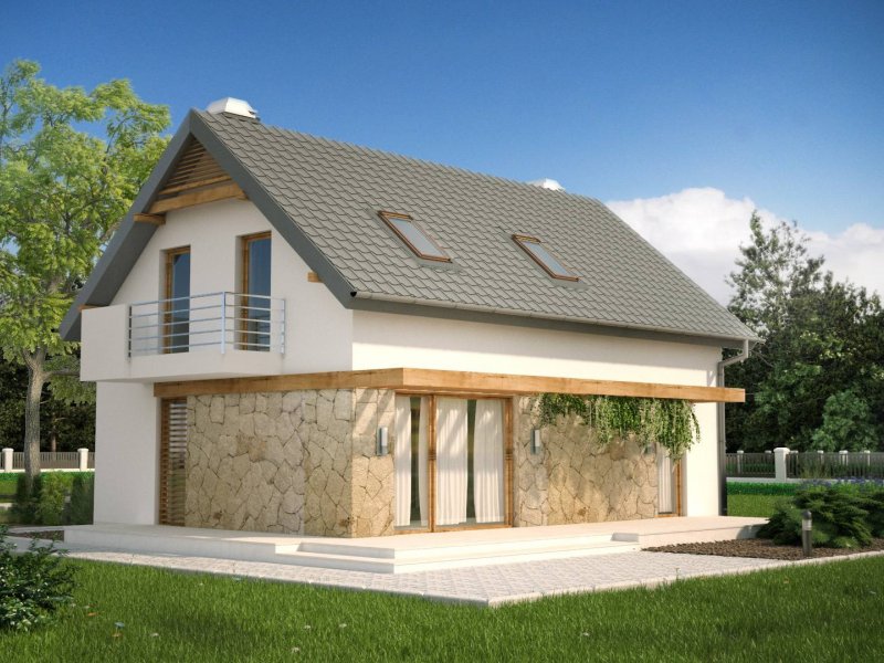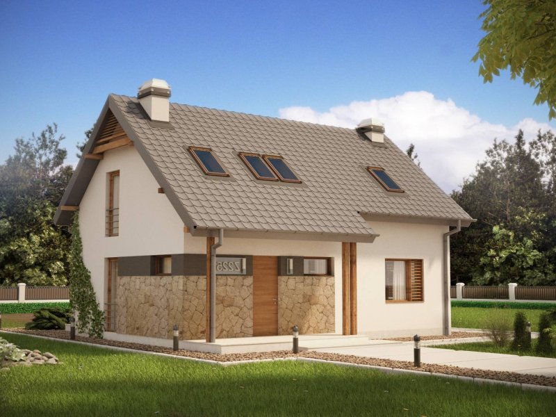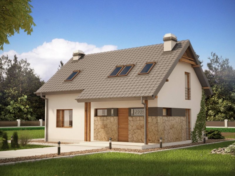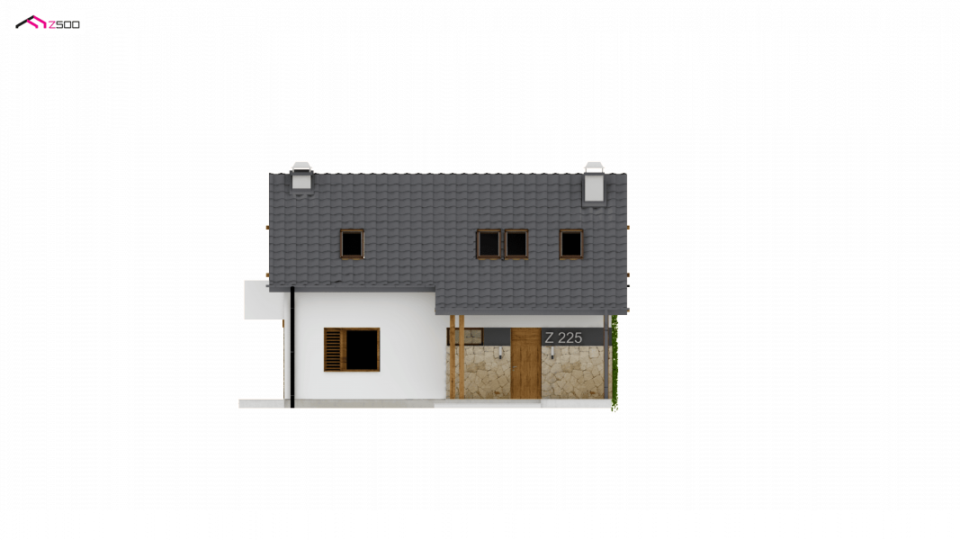 Z225 to kompaktowy dom z poddaszem użytkowym. Prosta bryła przekryta dwuspadowym dachem skrywa funkcjonalną przestrzeń użytkową dla 4-5 osobowej rodziny.