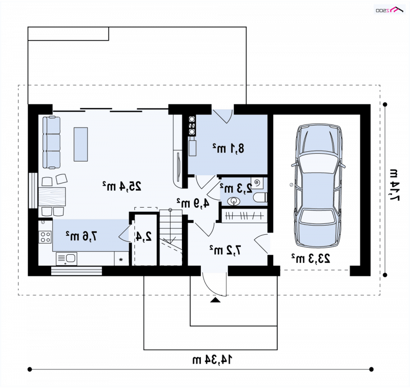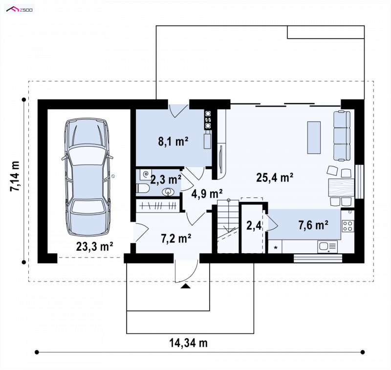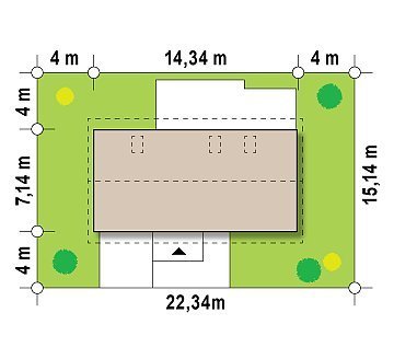 - Min. wymiary działki 15.14x22.34 m