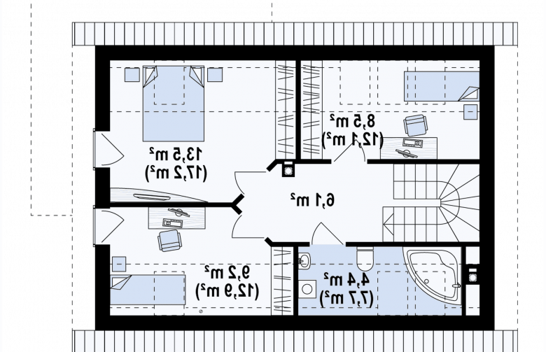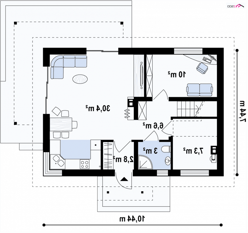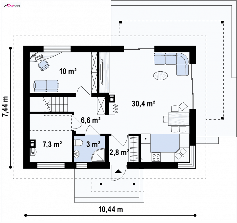 Z233 to praktyczny projekt domu, który ze względu na niewielką szerokość elewacji frontowej pozwoli ulokować budynek także na wąskiej działce (13,44m).