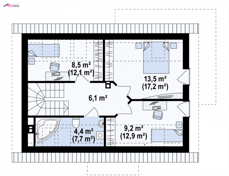 Projekt Z233 jest to funkcjonalny dom z poddaszem użytkowym.