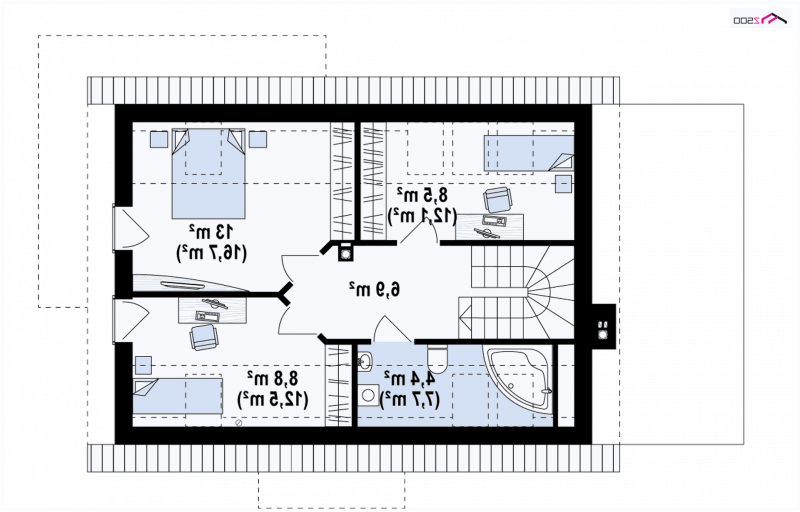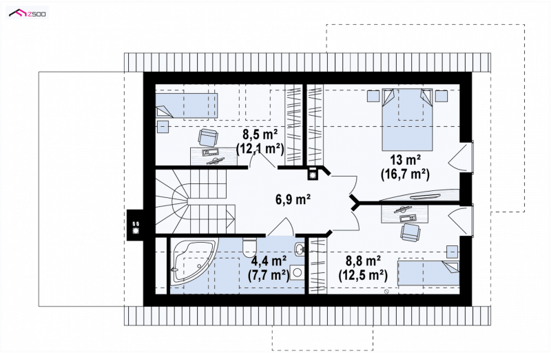 - Powierzchnia dachu 144.00 m²