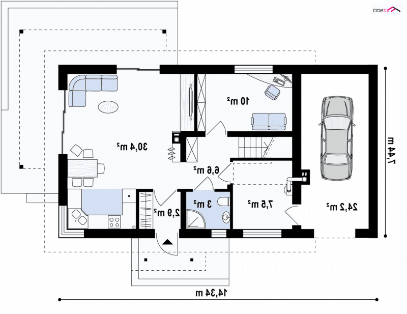 - Min. wymiary działki 15.44x21.34 m