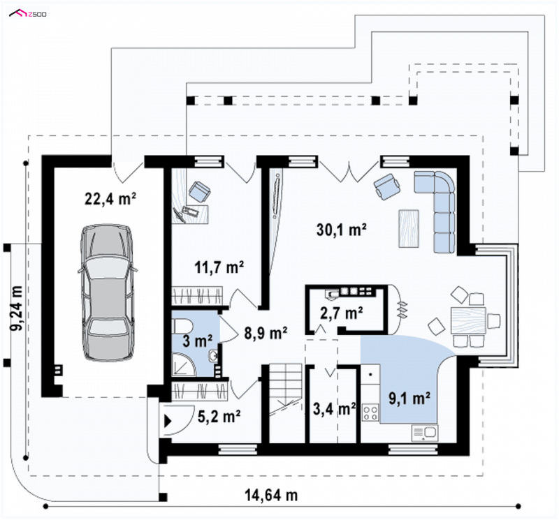 Z235 to idealna propozycja dla osób lubiących innowacyjne rozwiązania. Dom łączy w sobie najlepsze cechy domu jednorodzinnego: jest praktyczny w użytkowaniu i nietypowy w wyglądzie.
