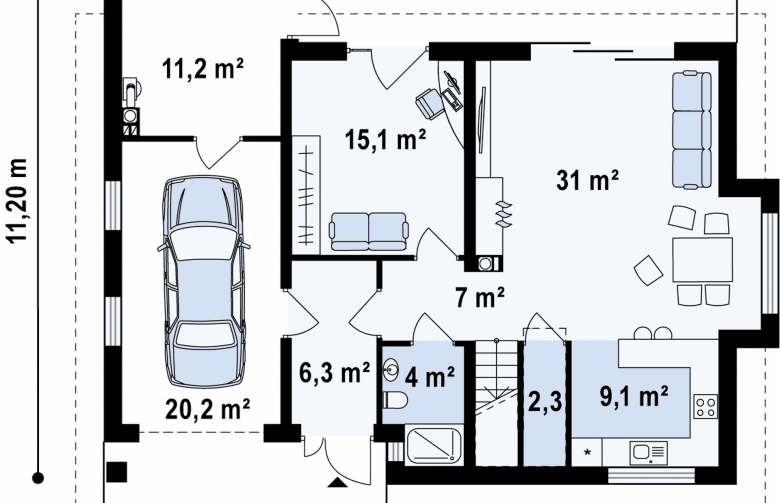 Z239 to wygodny dom z garażem jednostanowiskowym oraz poddaszem użytkowym. Na ponad 140m2 zaprojektowano niezwykle funkcjonalne wnętrze.