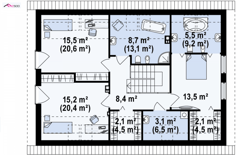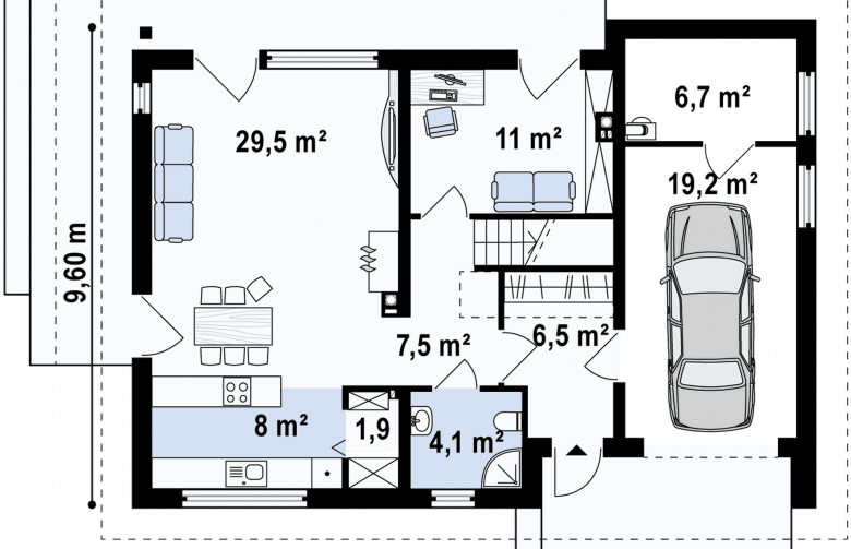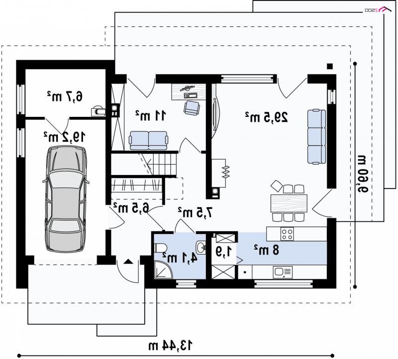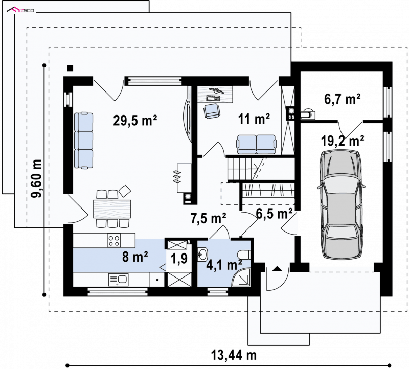 Z240 to niezwykle komfortowy dom z poddaszem użytkowym oraz garażem jednostanowiskowym.