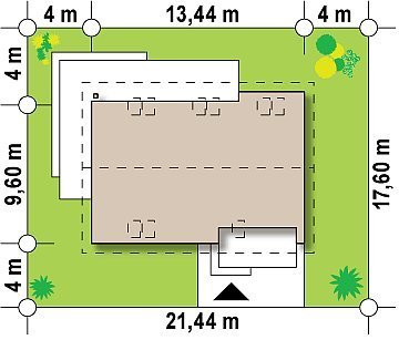 - Min. wymiary działki 17.60x21.44 m