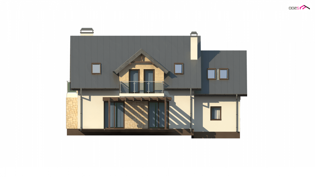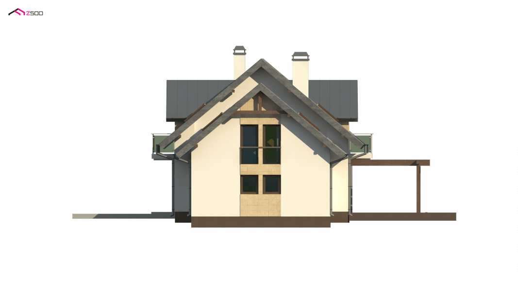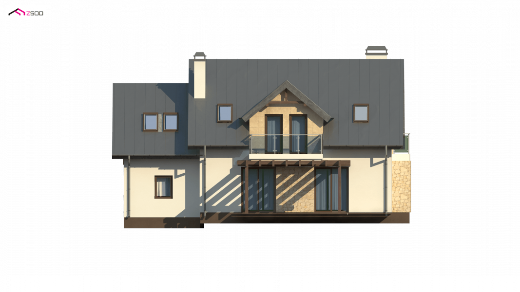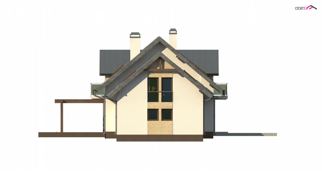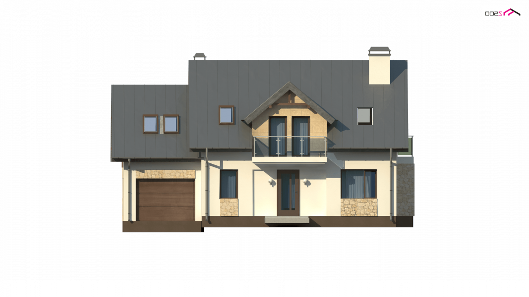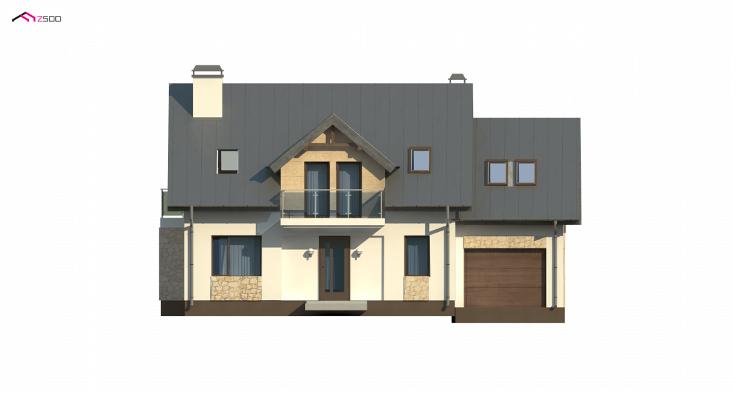 Z263 to dom jednorodzinny z poddaszem użytkowym i garażem jednostanowiskowym. Elewacje utrzymane są w jasnej kolorystyce z nowoczesnymi elementami wykończenia, co nadaje mu niepowtarzalny wygląd.