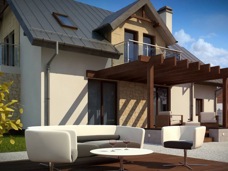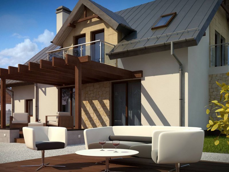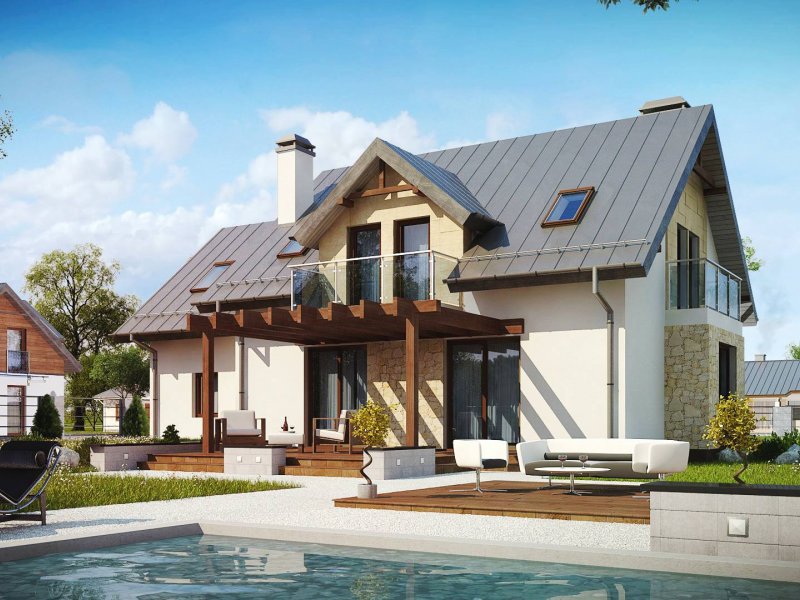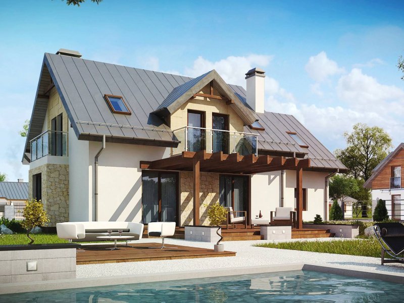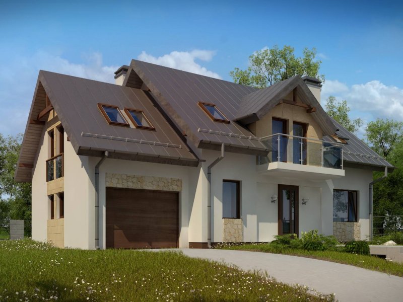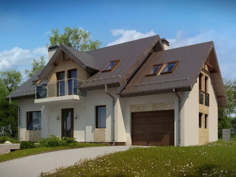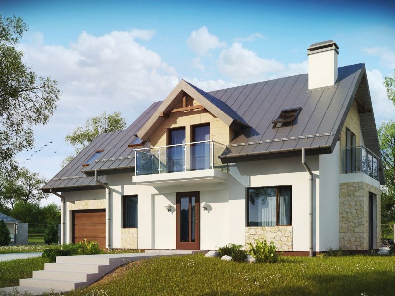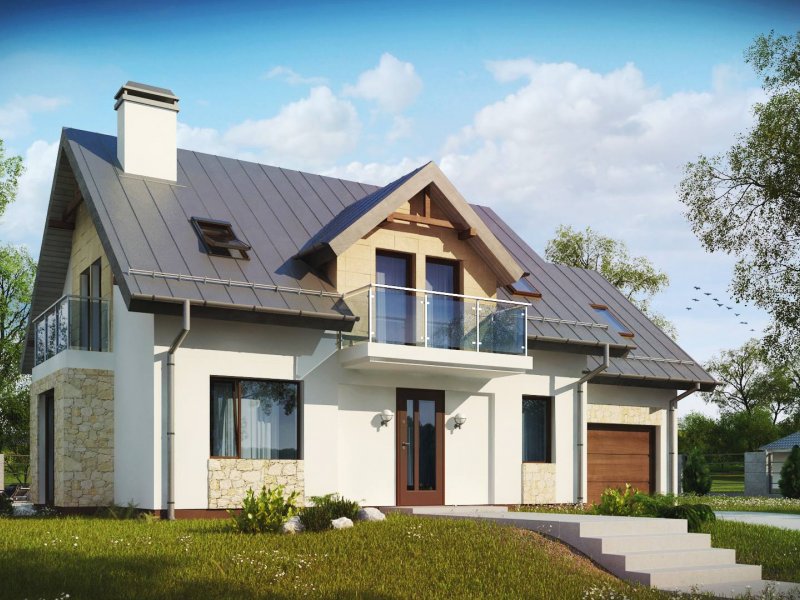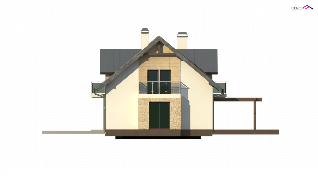 Z263 to dom jednorodzinny z poddaszem użytkowym i garażem jednostanowiskowym. Elewacje utrzymane są w jasnej kolorystyce z nowoczesnymi elementami wykończenia, co nadaje mu niepowtarzalny wygląd.