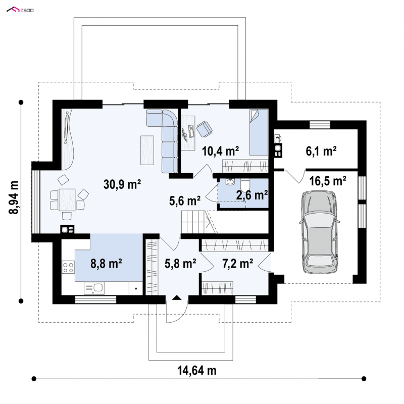 Projekt Z263 to idealna propozycja dla osób lubiących innowacyjne rozwiązania i poszukujących domu z funkcjonalnym układem wnętrza.