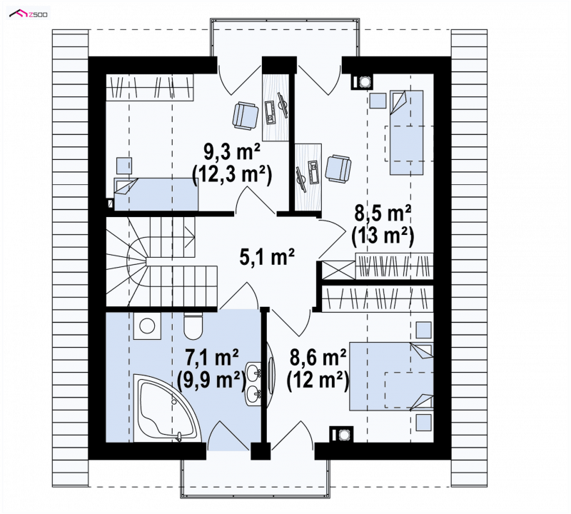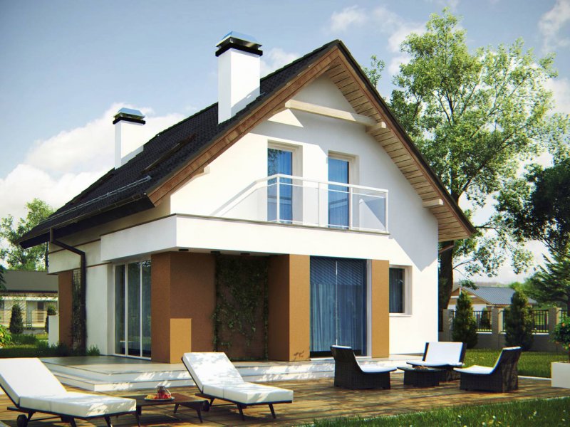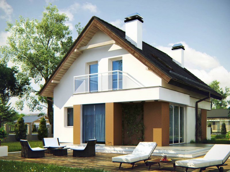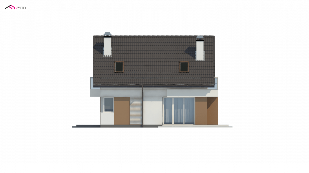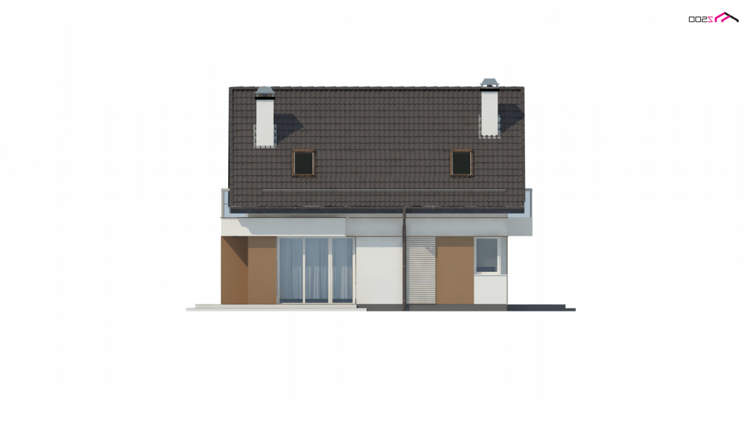 Z265 to projekt domu z poddaszem użytkowym i dwuspadowym dachem. Prostą bryłę urozmaicają dodatki na elewacjach co powoduje, że budynek nabrał ciekawego i nowoczesnego wyglądu.