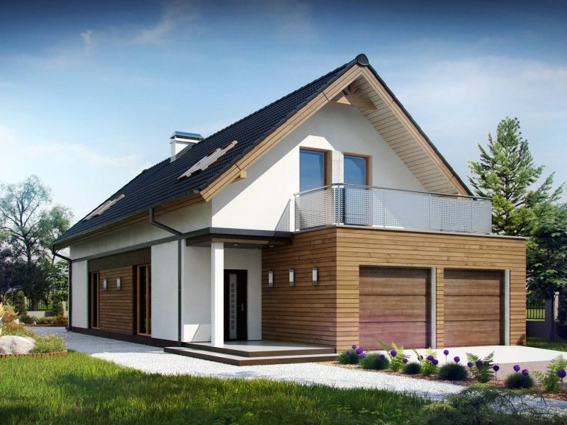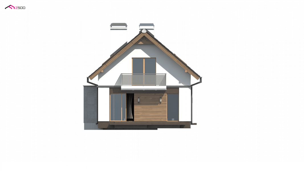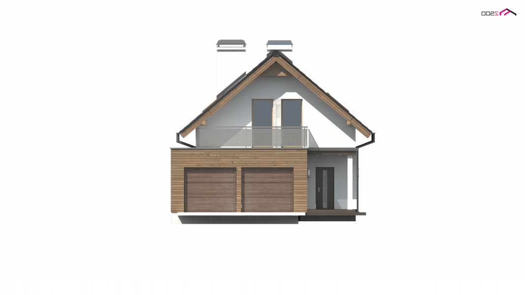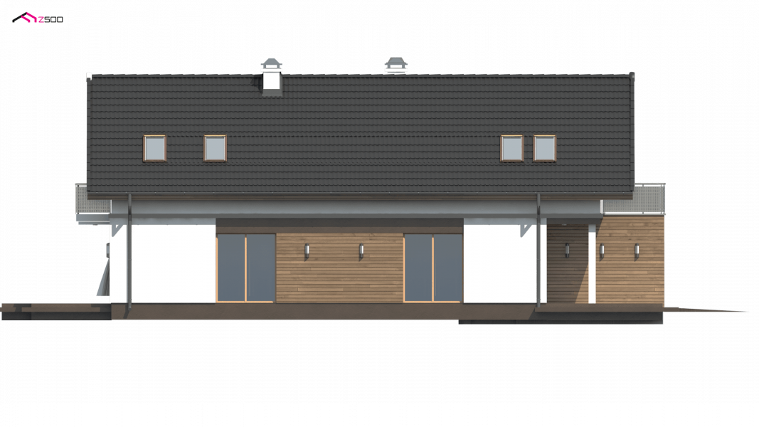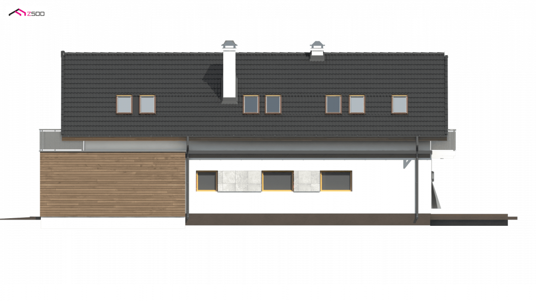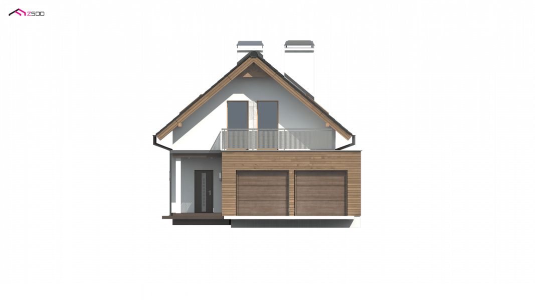 Z294 to funkcjonalny dom z garażem dwustanowiskowym i użytkowym poddaszem. Prostą bryłę urozmaicają ciekawe podziały elewacji i wysunięty garaż.