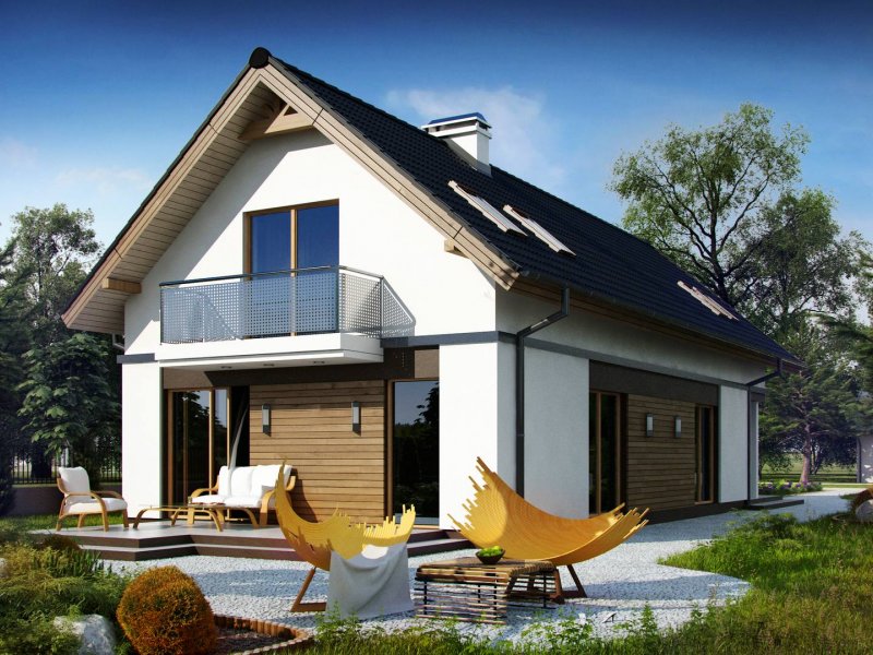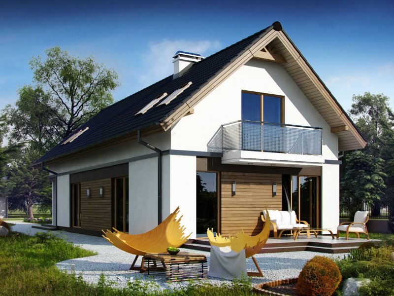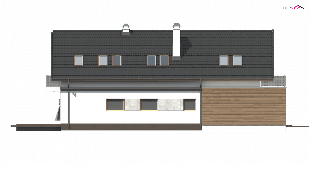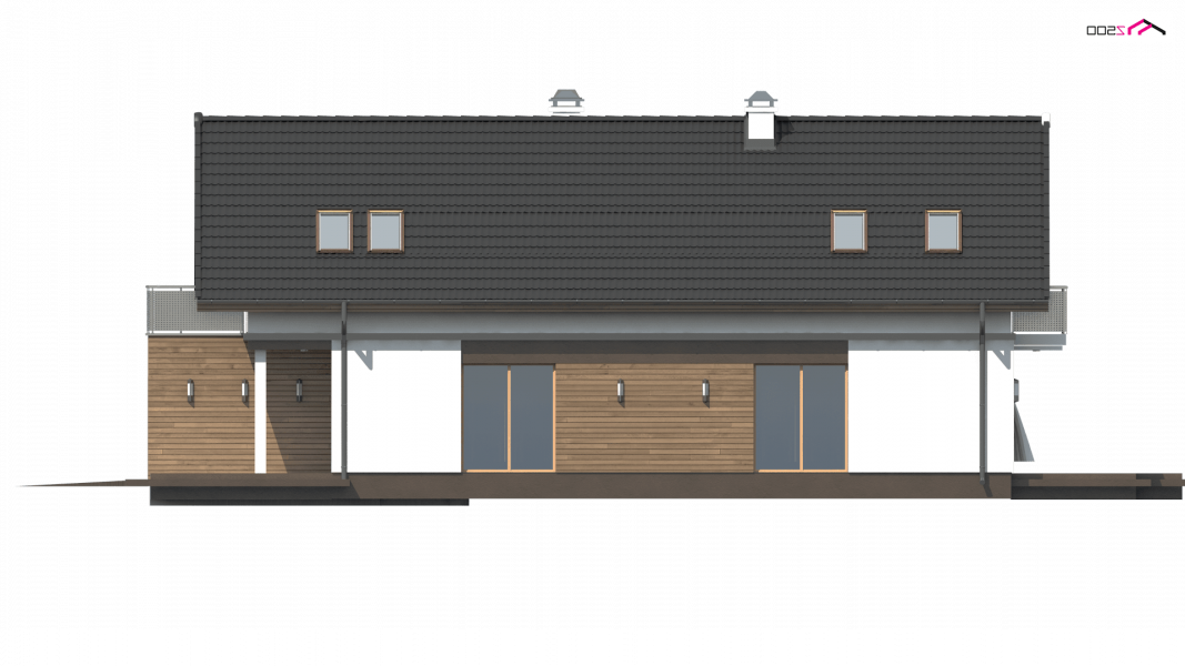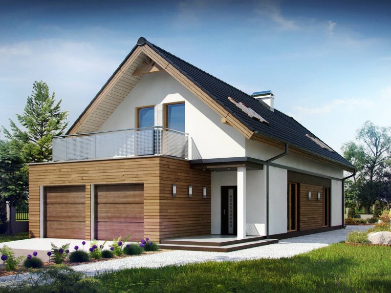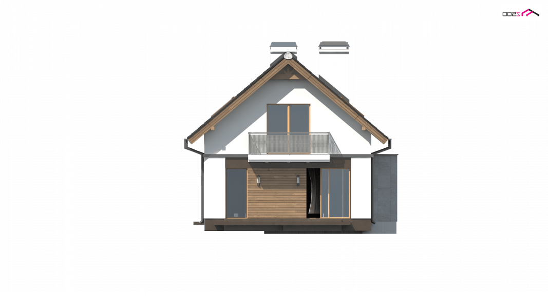 Z294 to funkcjonalny dom z garażem dwustanowiskowym i użytkowym poddaszem. Prostą bryłę urozmaicają ciekawe podziały elewacji i wysunięty garaż.