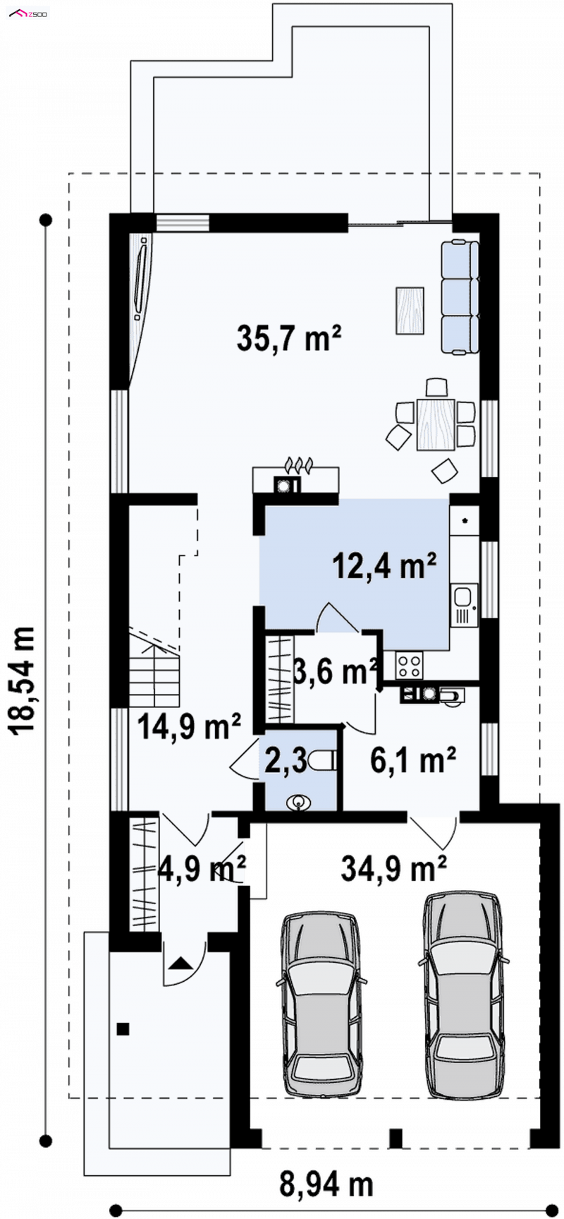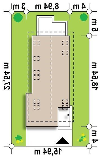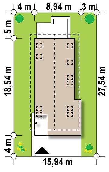 - Min. wymiary działki 26.54x15.94 m