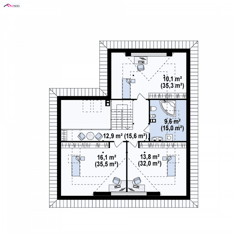 Ciekawie rozplanowane pomieszczenia zapewniają domownikom komfort każdego dnia.