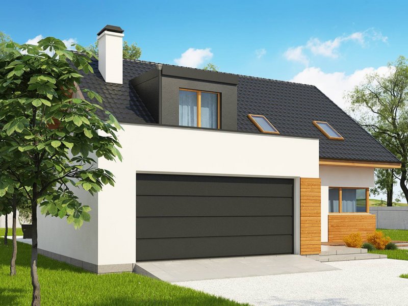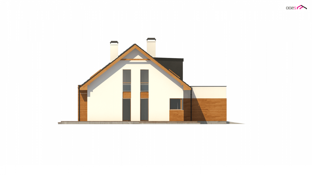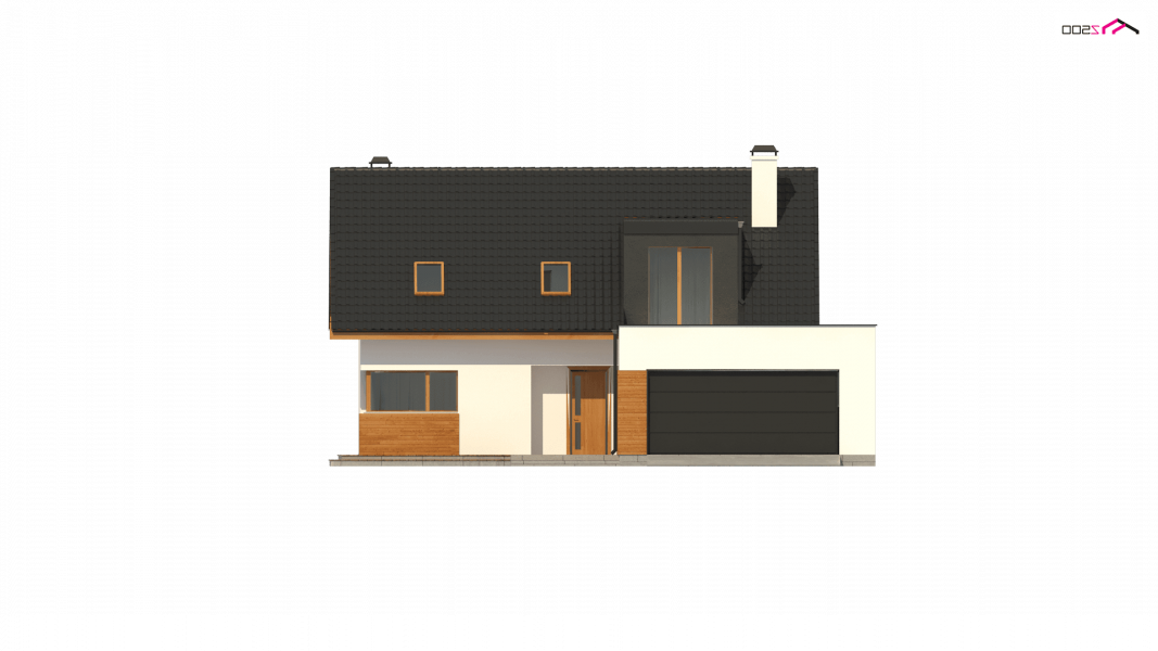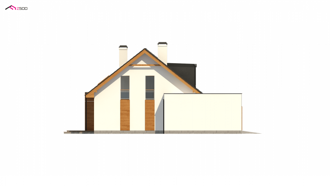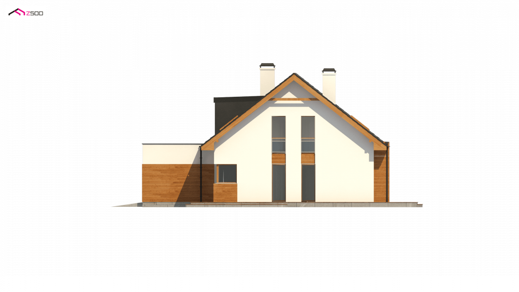 Projekt Z320 jest dużym, ok. 160 metrowym domem dwupoziomowym. Dwustanowiskowy garaż znajdujący się poza bryłą budynku został wysunięty od strony frontu tak, aby dzięki temu zajmował mniejszą szerokość działki. Nad garażem istnieje możliwość zrobienia tarasu, na który prowadzi wyjście z lukarny, natomiast z sieni mamy bezpośrednie wejście do garażu, by nie trzeba było go otwierać z zewnątrz aby dostać się do samochodu.
