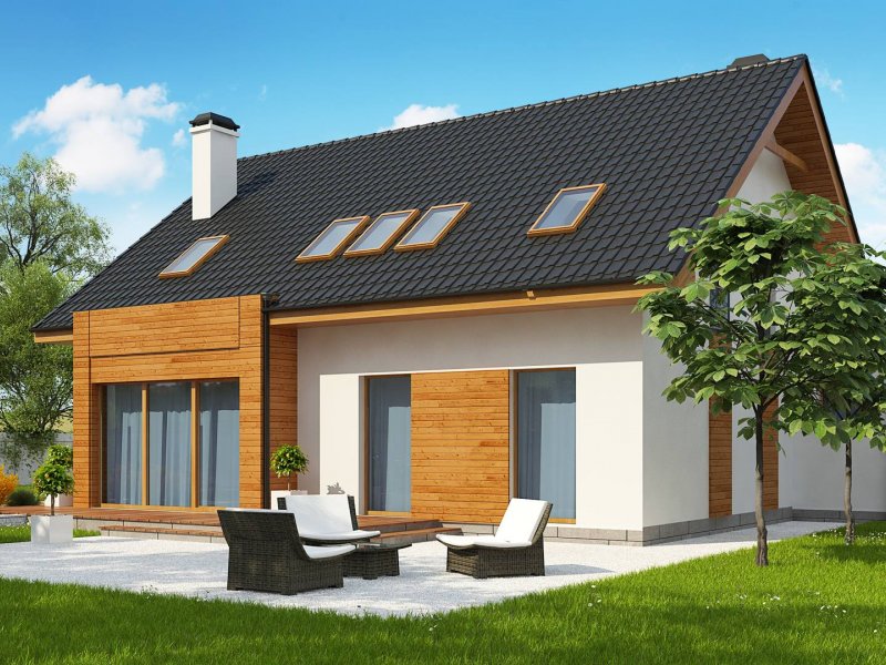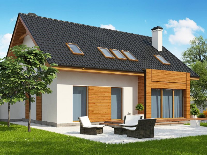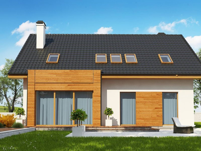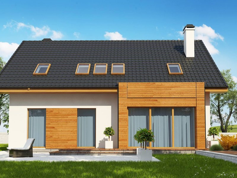 Połączenie białego tynku i drewna stanowi klasyczną elegancję elewacji zachęcając do stania się właścicielem tego oryginalnego domu.