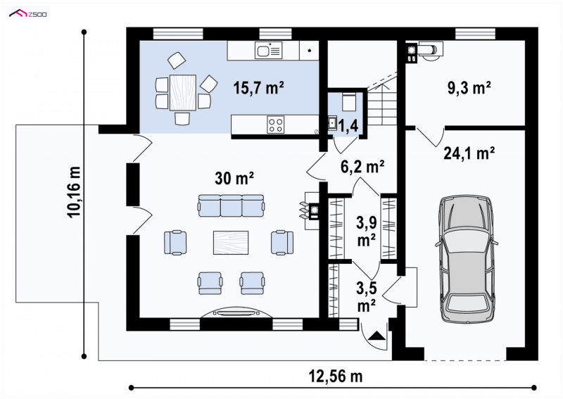 Z322 jest nowoczesnym projektem domu dwupoziomowego, o spadzistym dachu.