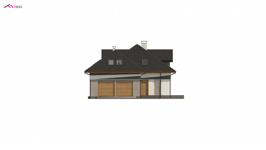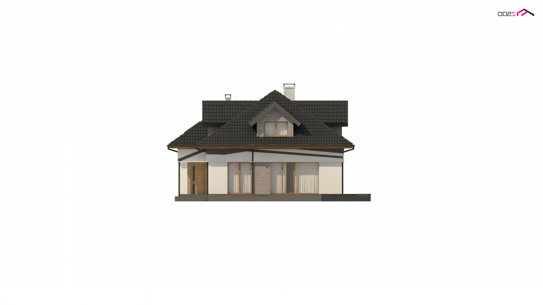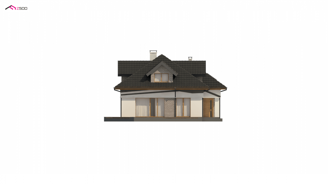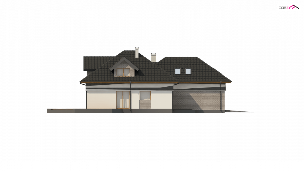 Współczesny dom jednorodzinny z poddaszem użytkowym, o pięknej elewacji z elementami z cegły klinkierowej. Projekt wyróżnia się spośród innych dzięki atrakcyjnemu wzorowi, biegnącemu dookoła miłej dla oka elewacji domu. Wymyślony przez autora projektu motyw linii wodzących wyróżnia, podkreśla i nadaje styl, a kształt tarasu, nazwiązuje do elewacji i tworzy jedność.