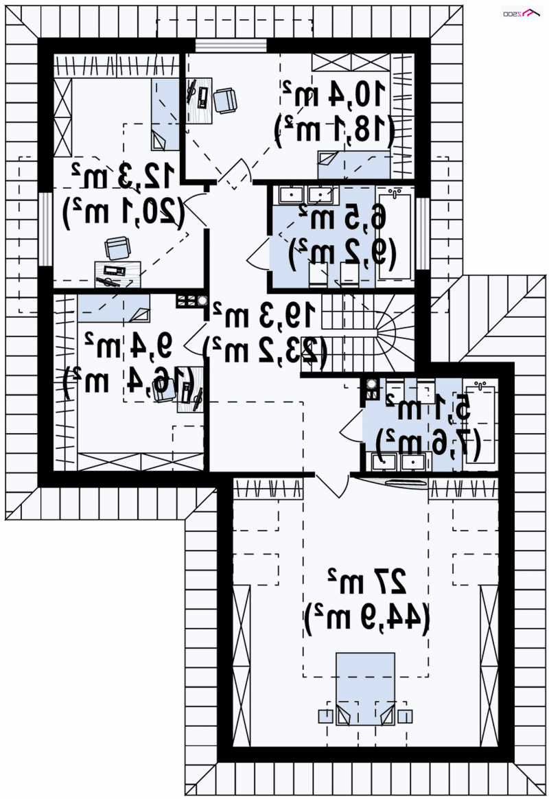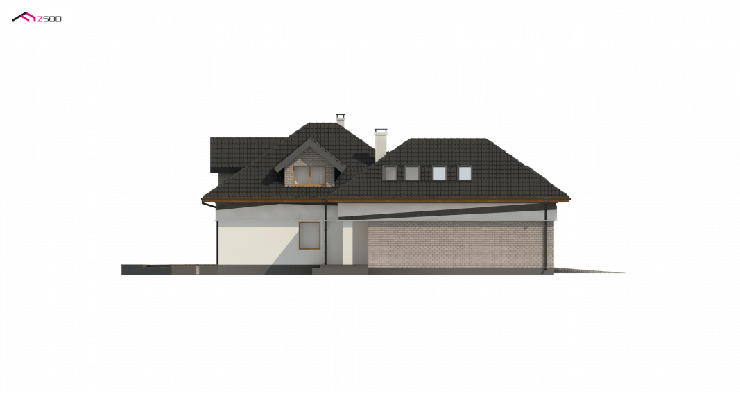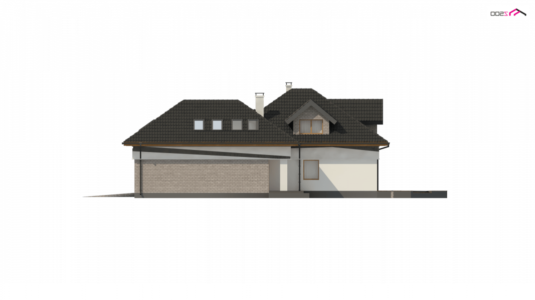 Poddasze użytkowe w projekcie Z325 jest użytkowym nie tylko z nazwy. Świadczą o tym zaprojektowane lukarny, dzięki którym zyskujemy powierzchnię podłogi, po której możemy poruszać się w pozycji pionowej, nie zaś przygarbionej jak w przypadku, gdy na poddaszu są same „skosy”. Mniejsza ilość „skosów” ma również znaczący wpływ na większą możliwość umeblowania pomieszczeń.