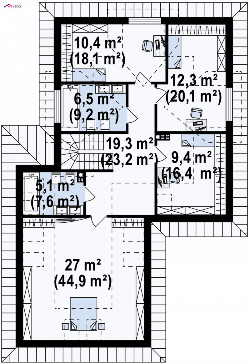 Cztery pokoje, dwie łazienki i wygląd kominka na poddaszu użytkowym nie tylko z nazwy, pozostają do fantazyjnej lub klasycznej aranżacji przyszłych właścicieli domu Z325.