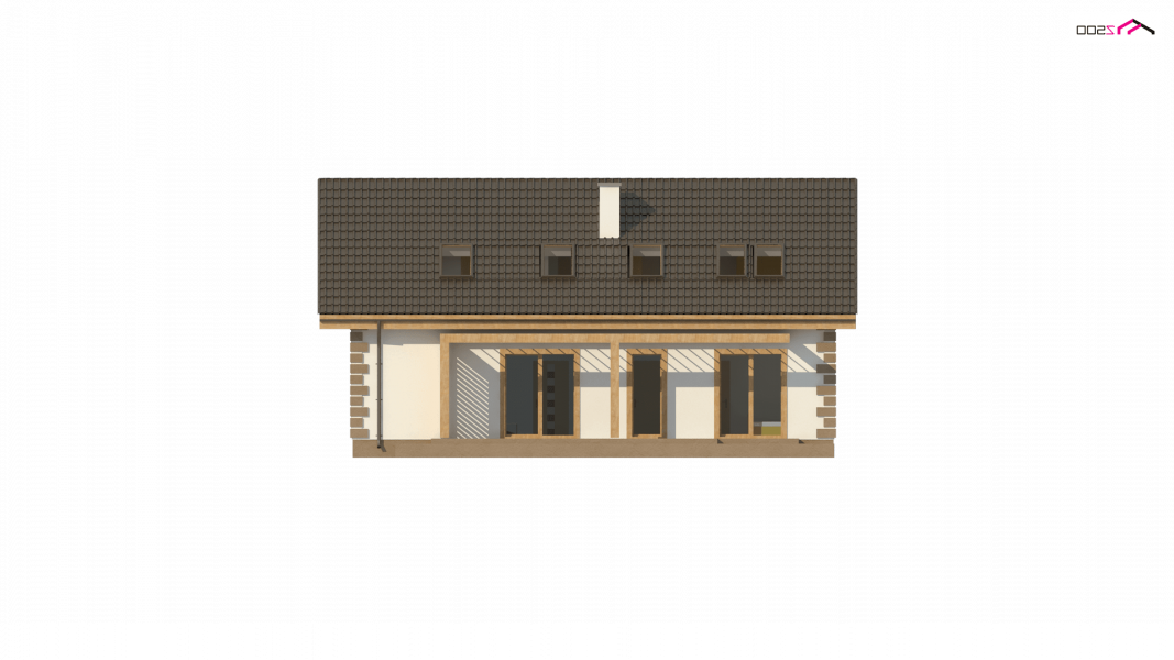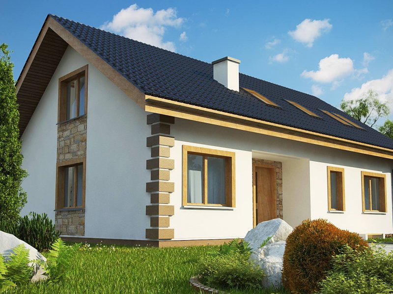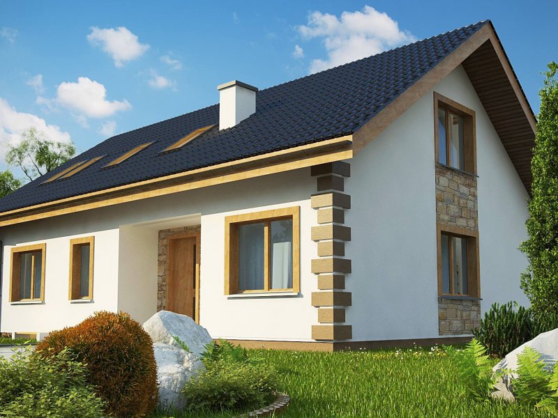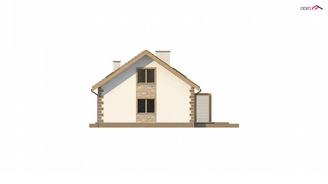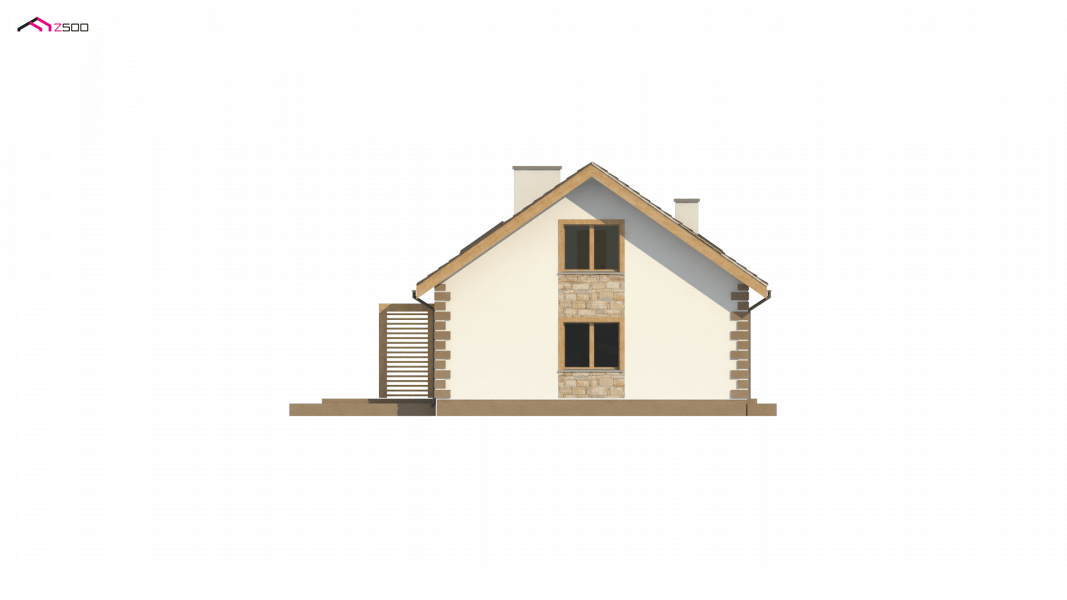 Dom klasyczny z dachem dwuspadowym i poddaszem użytkowym. Posiada zadaszone wejście aby osłonić je w dni pełne słoty. Elewację wykończono białym tynkiem, a narożne boniowania stanowią podkreślenie klasycznego, dobrego smaku.