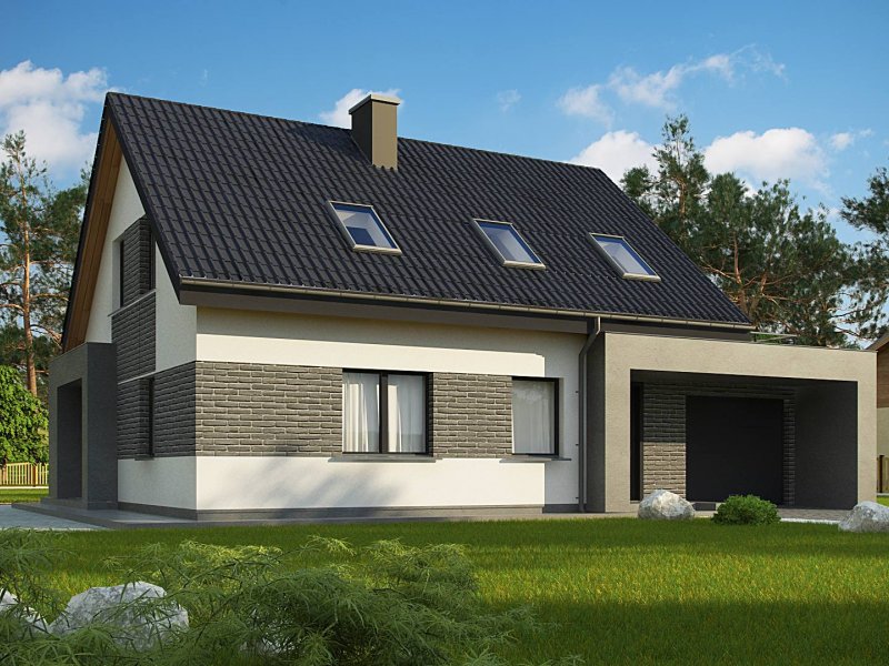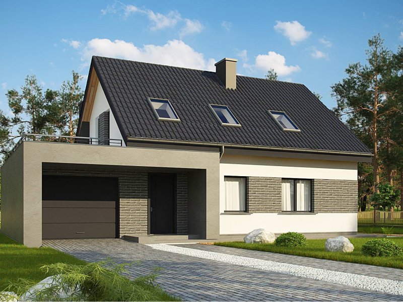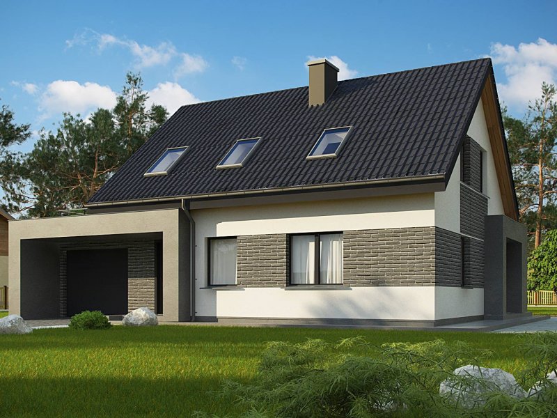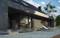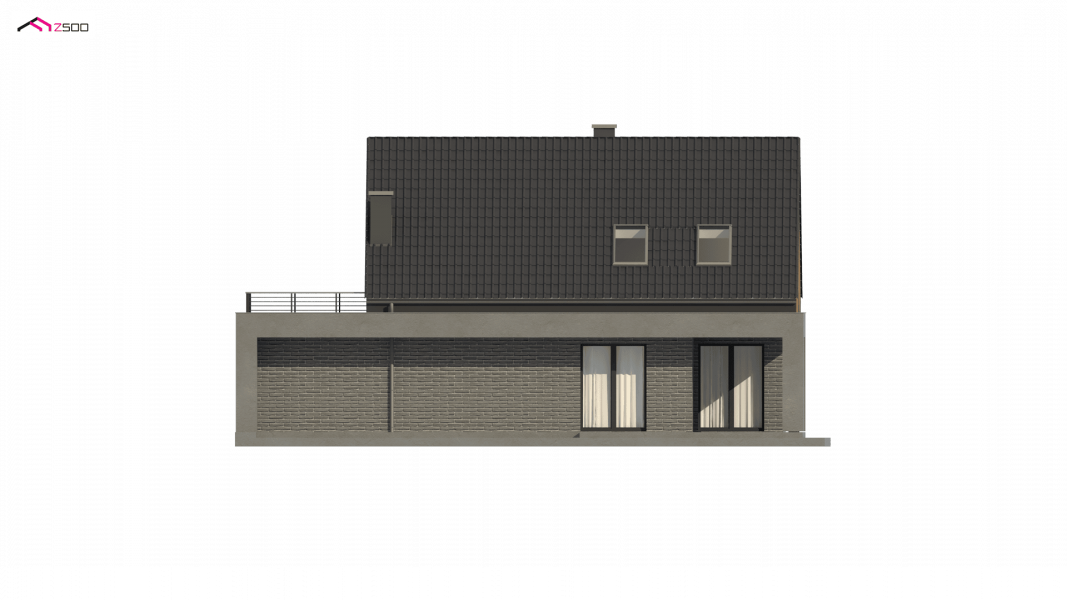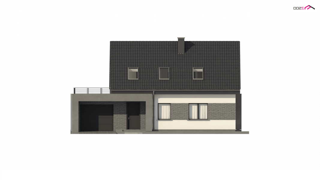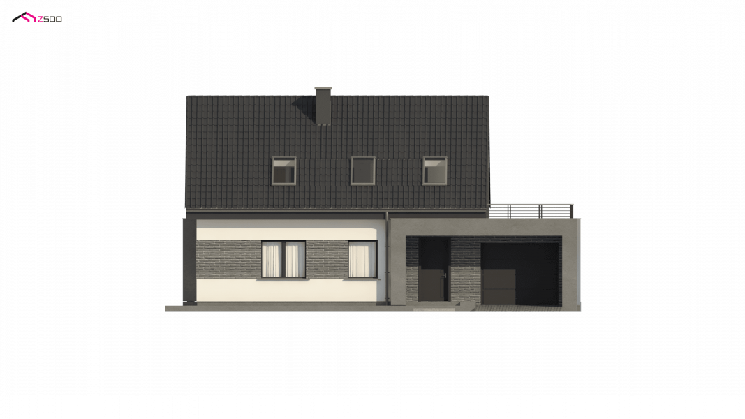 Z347 to dom, który posiada salon i kuchnię od frontu. Jego plan rozrysowano jako bryłę na planie prostokąta, z poddaszem użytkowym i dachem dwuspadowym. Proste elementy dekoracyjne służą jednocześnie jako zadaszenie wejścia i tarasu. Elewacja o biało-szarej kolorystyce daje wrażenie czystości, schludności i skromności. Wyżej wymienione atuty architektoniczne są korzystne dla kieszeni inwestora.