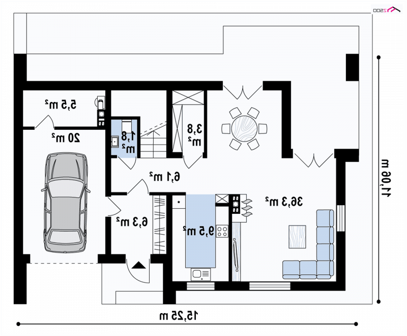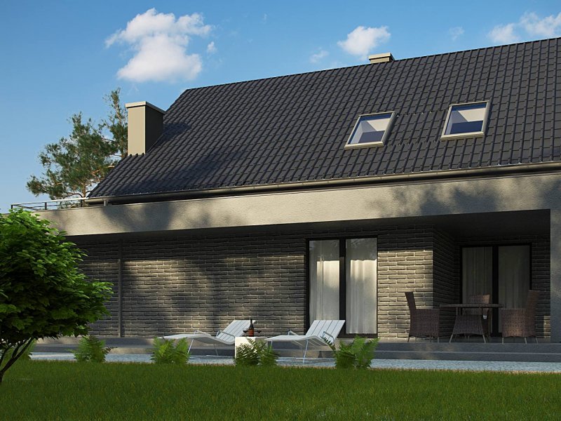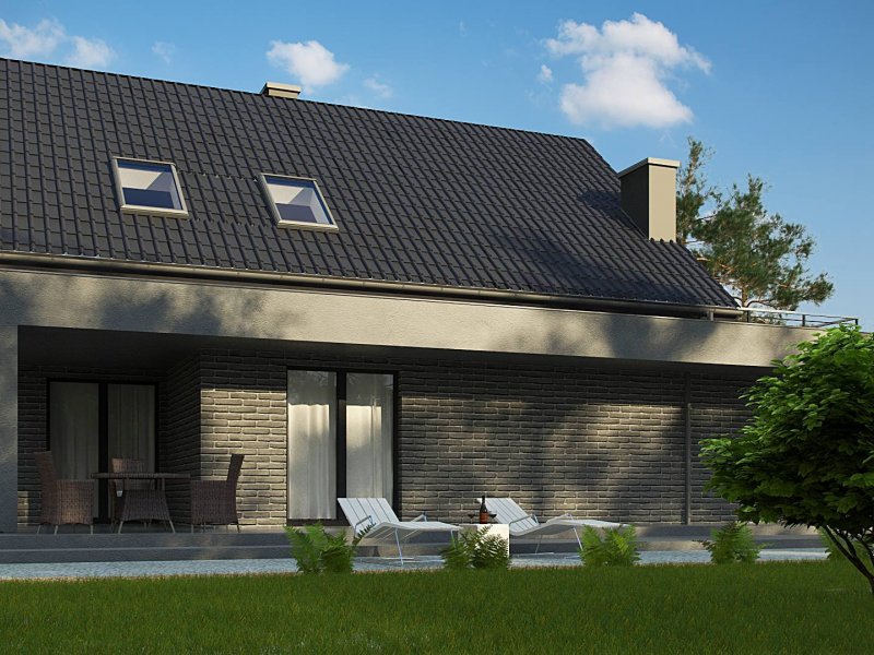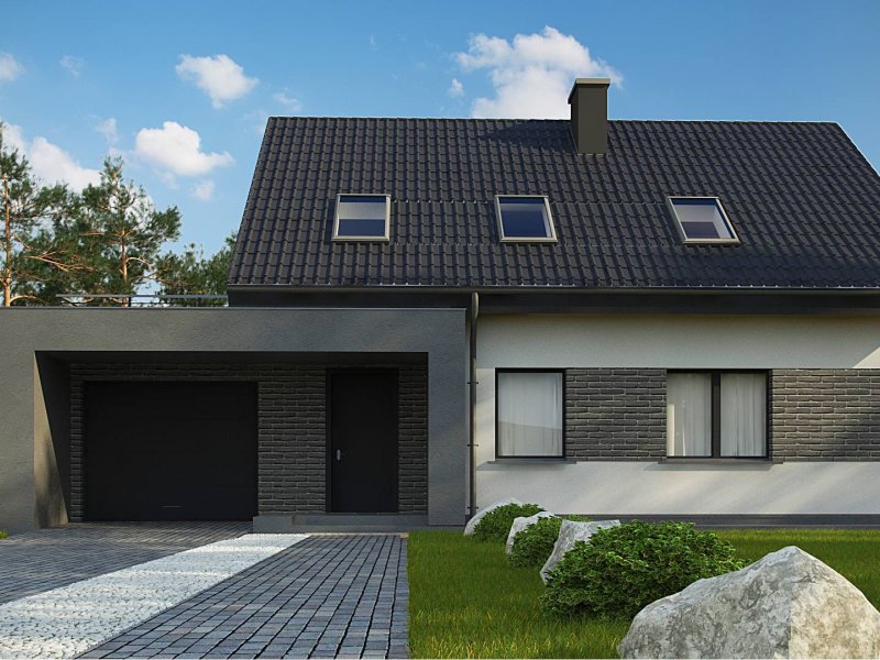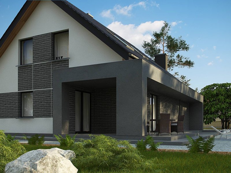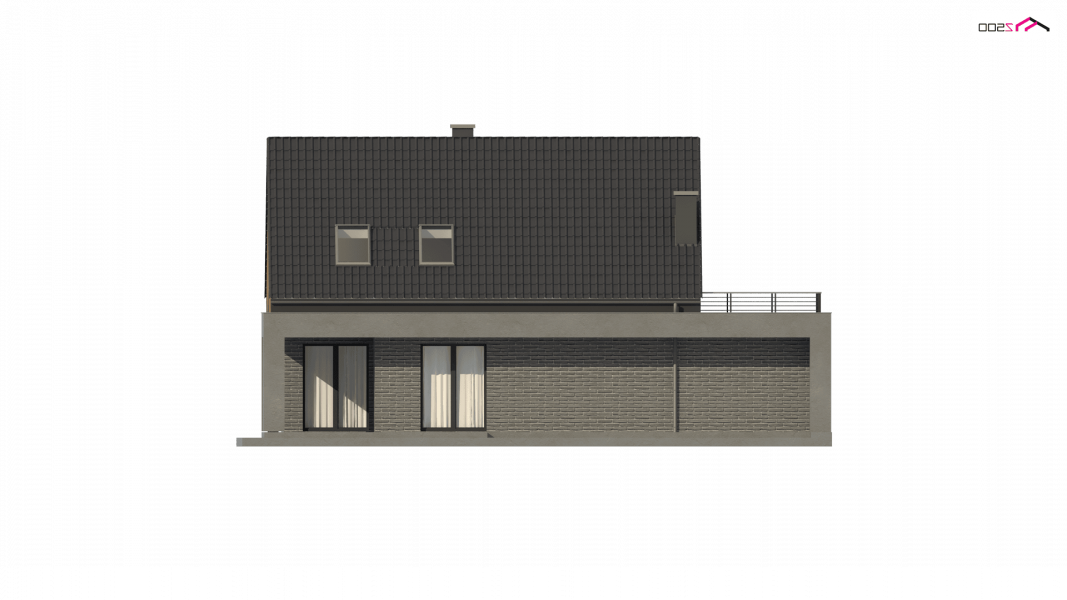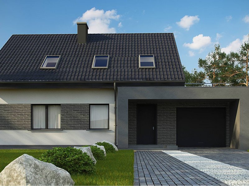 Z347 to dom, który posiada salon i kuchnię od frontu. Jego plan rozrysowano jako bryłę na planie prostokąta, z poddaszem użytkowym i dachem dwuspadowym. Proste elementy dekoracyjne służą jednocześnie jako zadaszenie wejścia i tarasu. Elewacja o biało-szarej kolorystyce daje wrażenie czystości, schludności i skromności. Wyżej wymienione atuty architektoniczne są korzystne dla kieszeni inwestora.