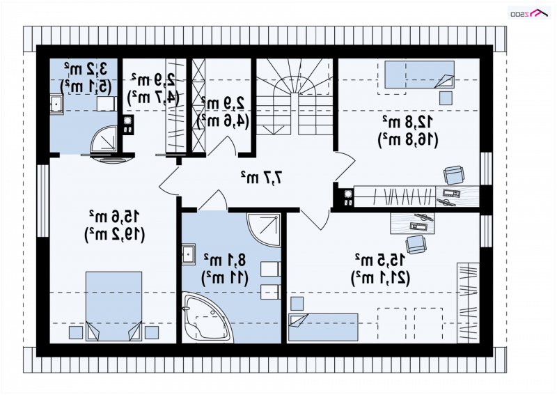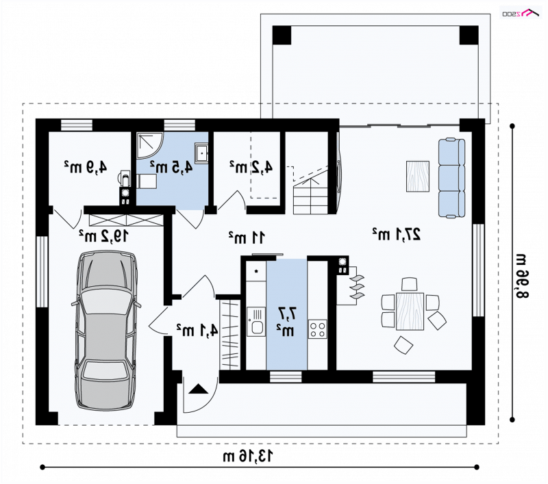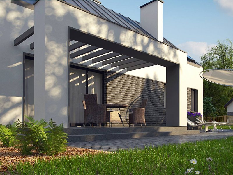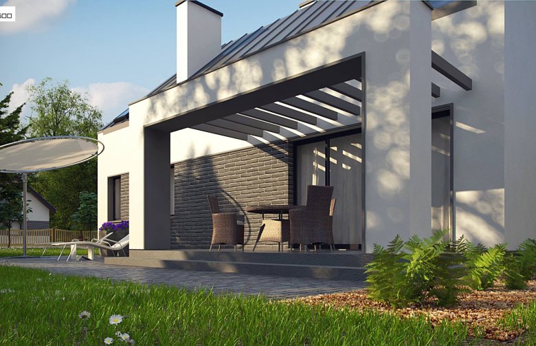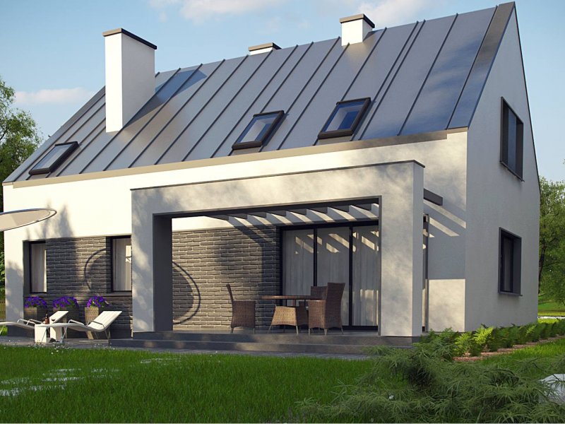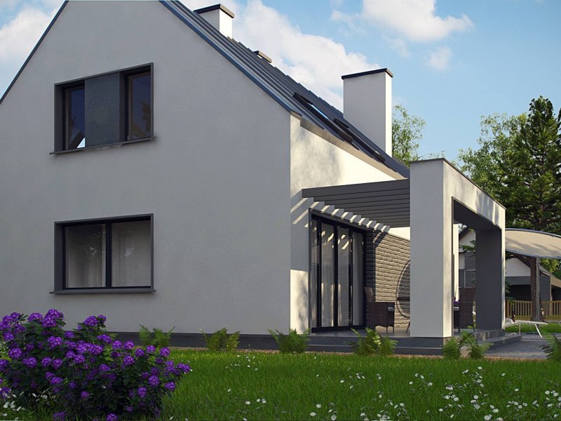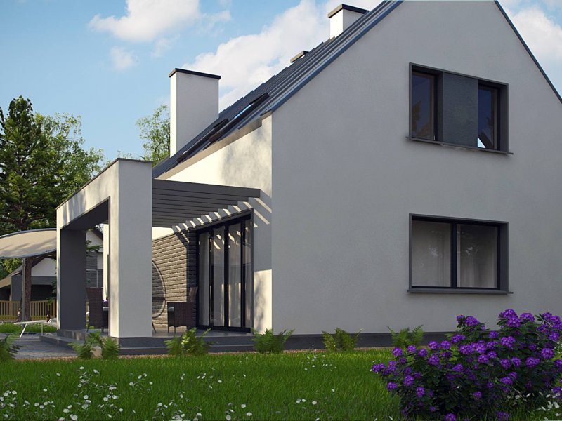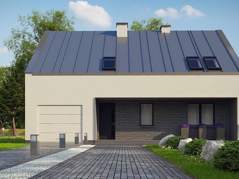 Z353 to nieduży, nowoczesny dom o powierzchni 123m2. Dach dwuspadowy jest jednym z tańszych w wykonaniu. Wzorowany na tradycyjnej więźbie dachowej bez stropodachów. Wykonane w stylu skandynawskim, o stonowanej kolorystyce wzornictwo elewacji jest bardzo nowoczesne. Jedynymi elementami ozdobnymi są szare płytki klinkierowe.